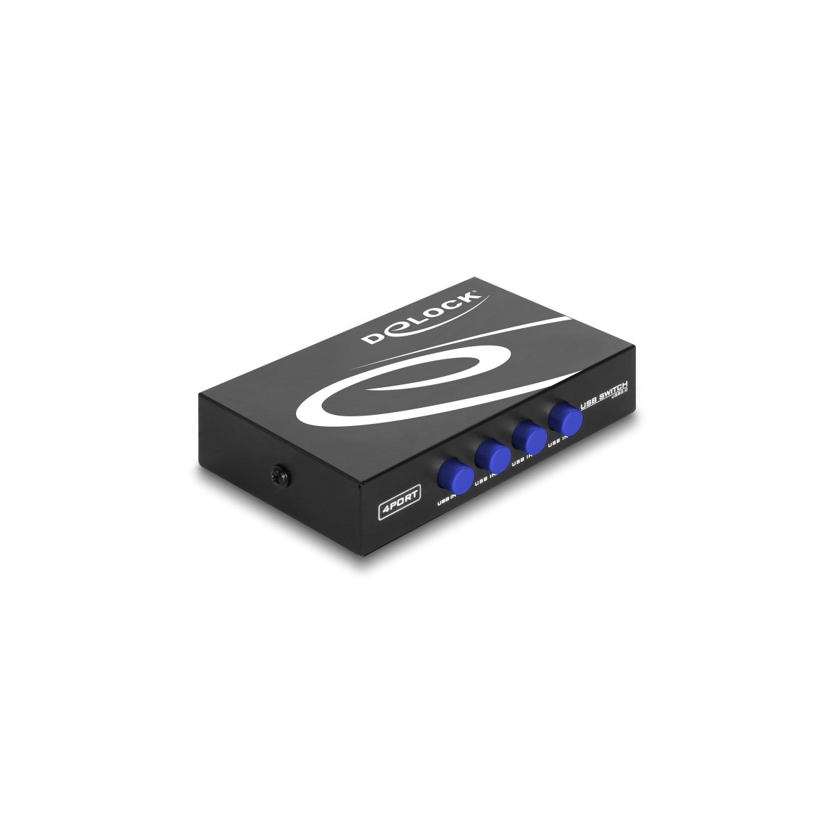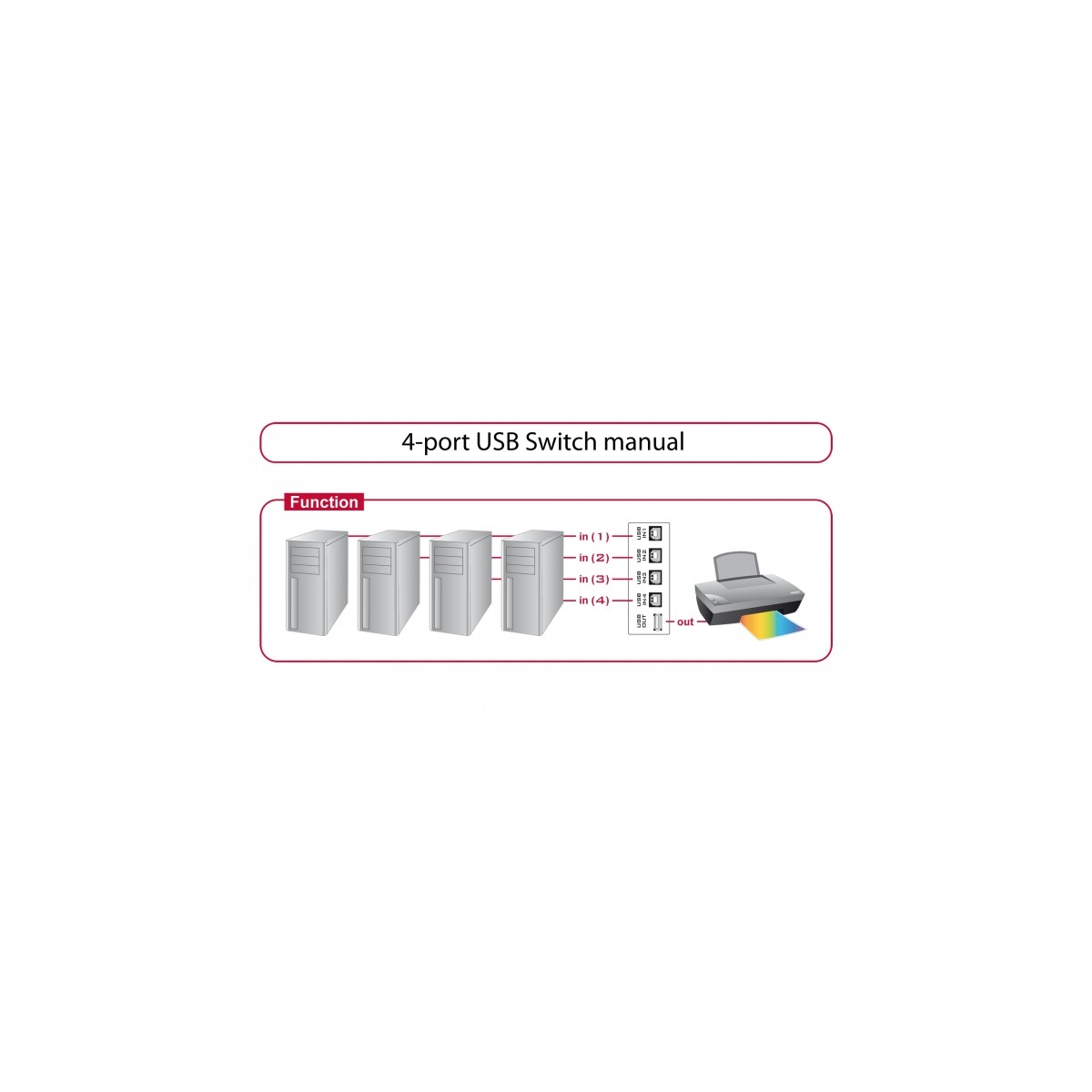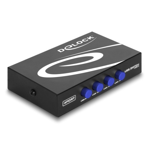This switch by Delock can be used for connection of one USB device to four computers or laptops. It can be connect e.g. a HDD, printer, scanner etc. to the switch. By using one of the four buttons it can manually select which device should be connected to the USB device.