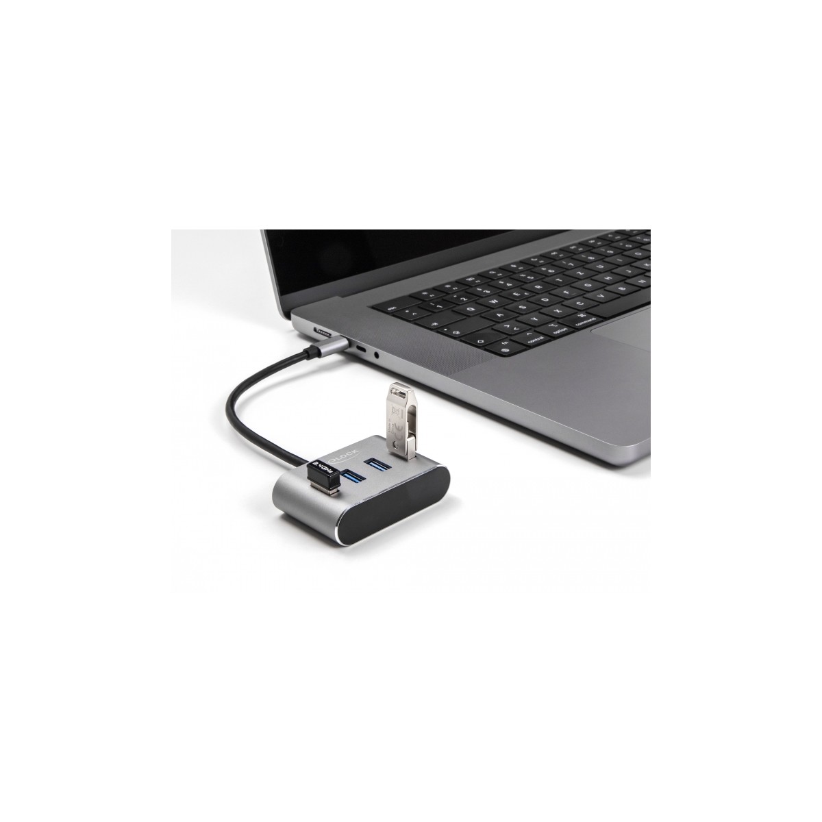 Due to its small dimensions and its sturdy housing, this Delock Hub is particularly suitable for travelling. It can simply be packed into the bag together with the laptop or tablet and used as needed.