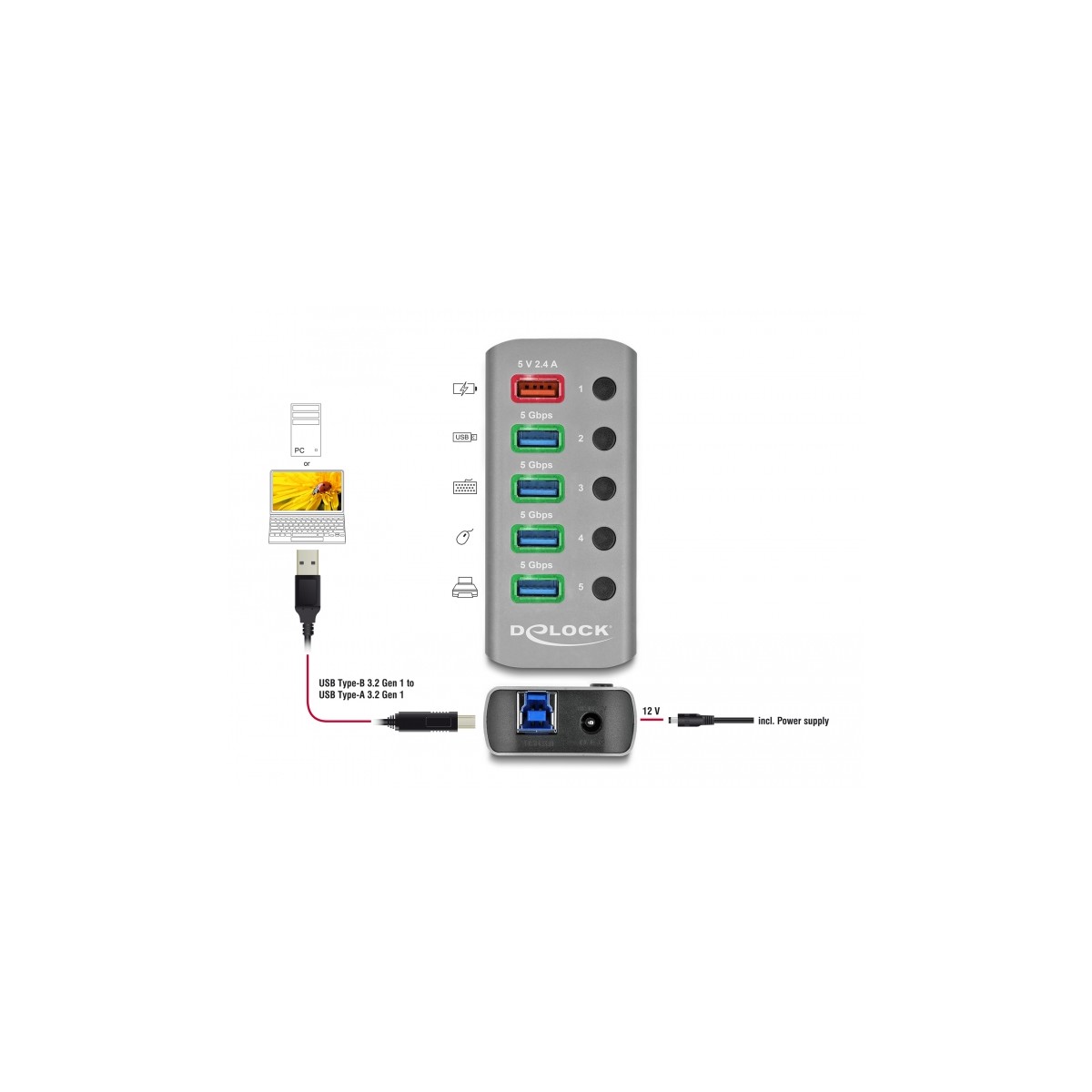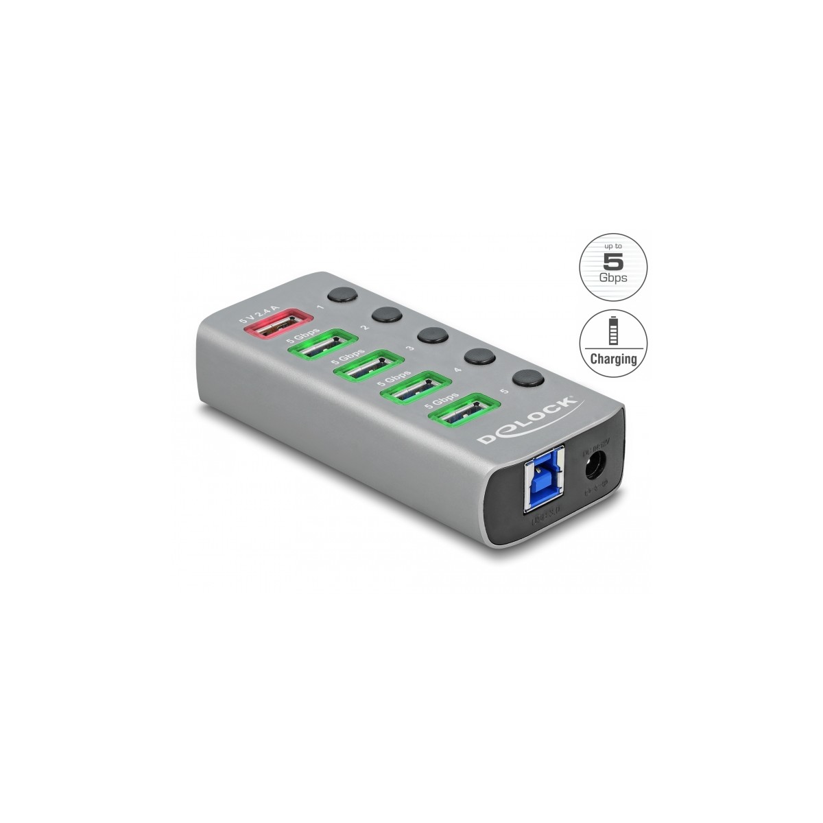Delock USB 3.2 Gen 1 Hub with 4 Ports + 1 Fast Charging Port with Switch and Illumination