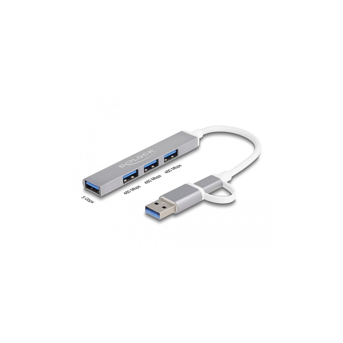 This solid USB hub by Delock with metal housing can be connected to a computer, laptop or mobile device via the USB Type-A or USB-C™ interface. It expands the computer by 4 USB Type-A ports. Different USB devices such as USB flash memory, card reader, external enclosure etc. can be connected.