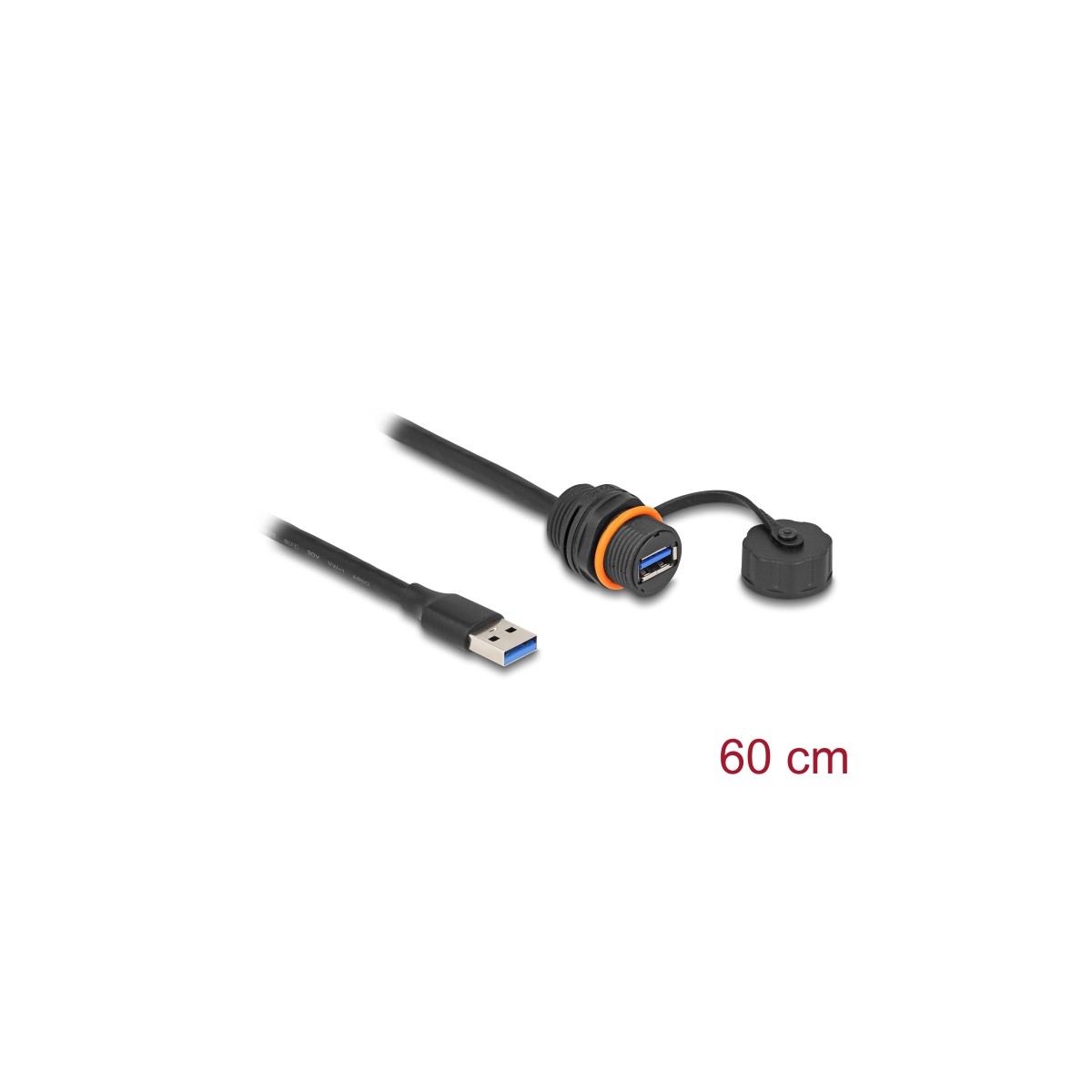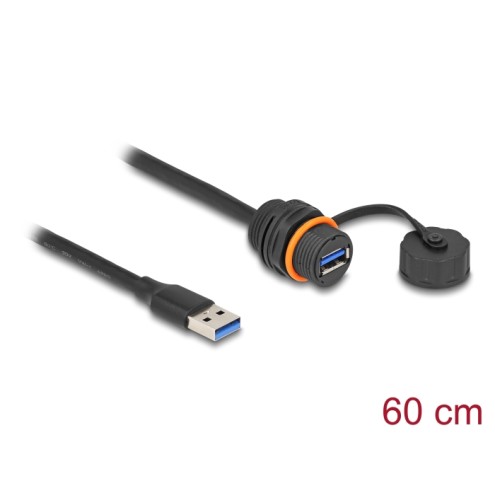 Delock USB 5 Gbps Cable USB Type-A male to USB Type-A female for installation with M20 thread and protective cap IP68 dust and w