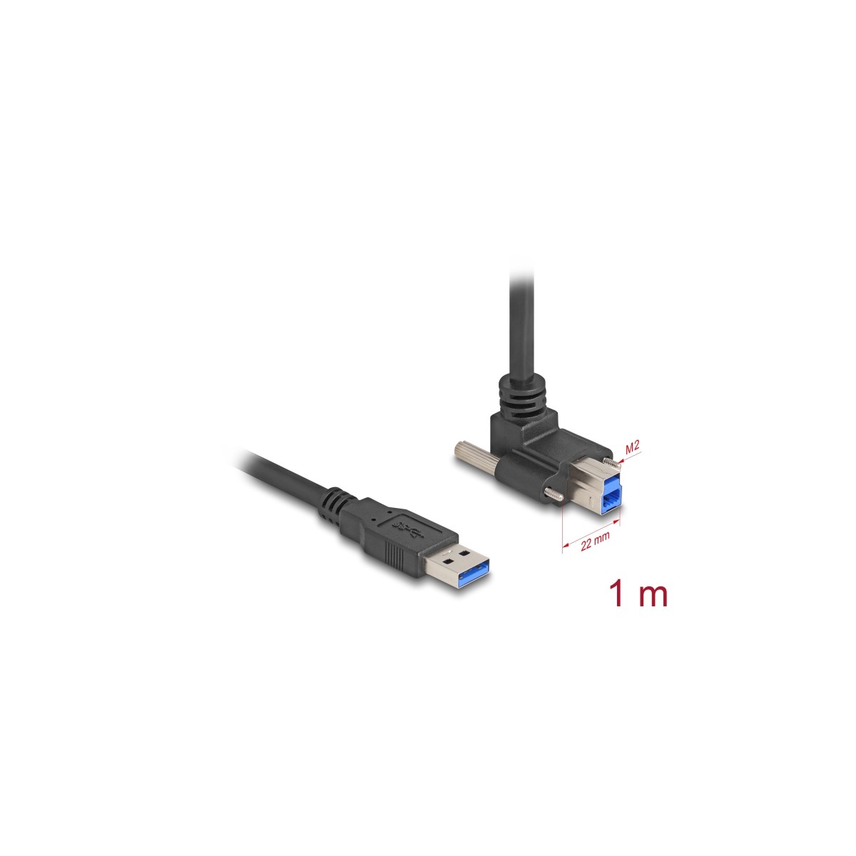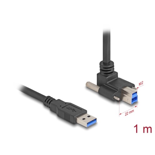 Delock USB 5 Gbps Cable USB Type-A male straight to USB Type-B male with screw distance 22 mm 90° upwards angled 1 m black