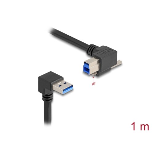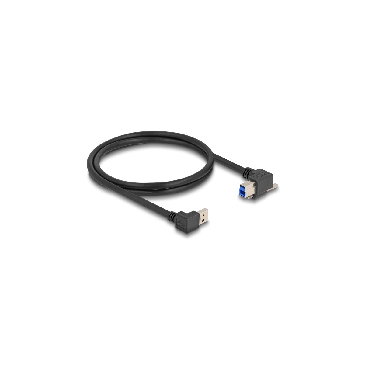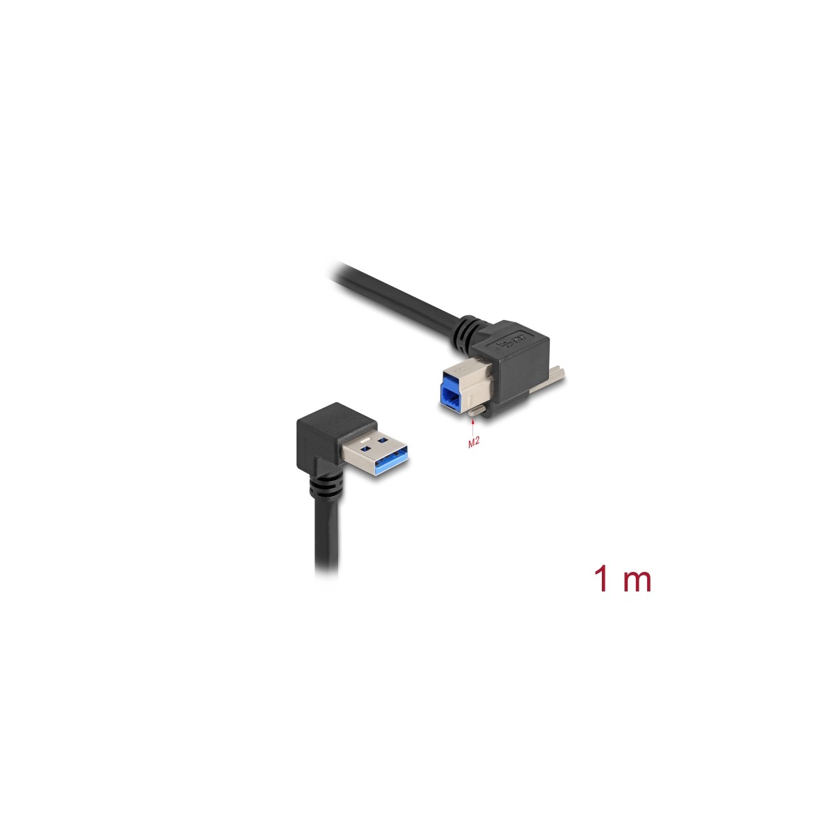 Delock USB 5 Gbps Cable USB Type-A male 90° downwards angled to USB Type-B male with screw 90° right angled 1 m black