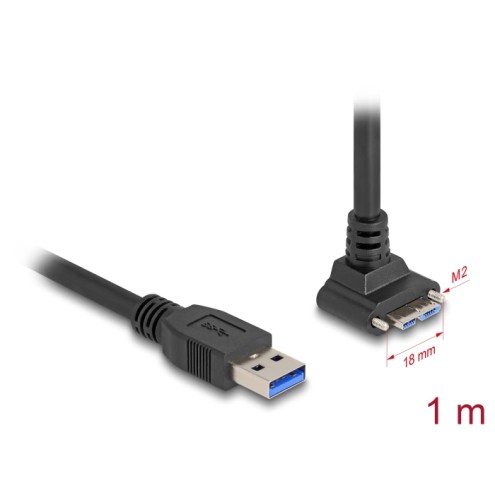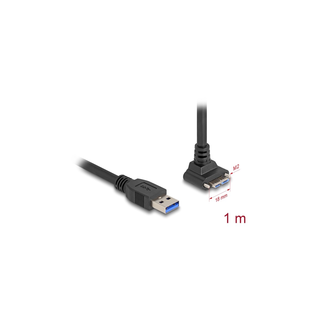 Delock USB 5 Gbps Cable USB Type-A male straight to USB Micro-B male with screw distance 18 mm 90° upwards angled 1 m black