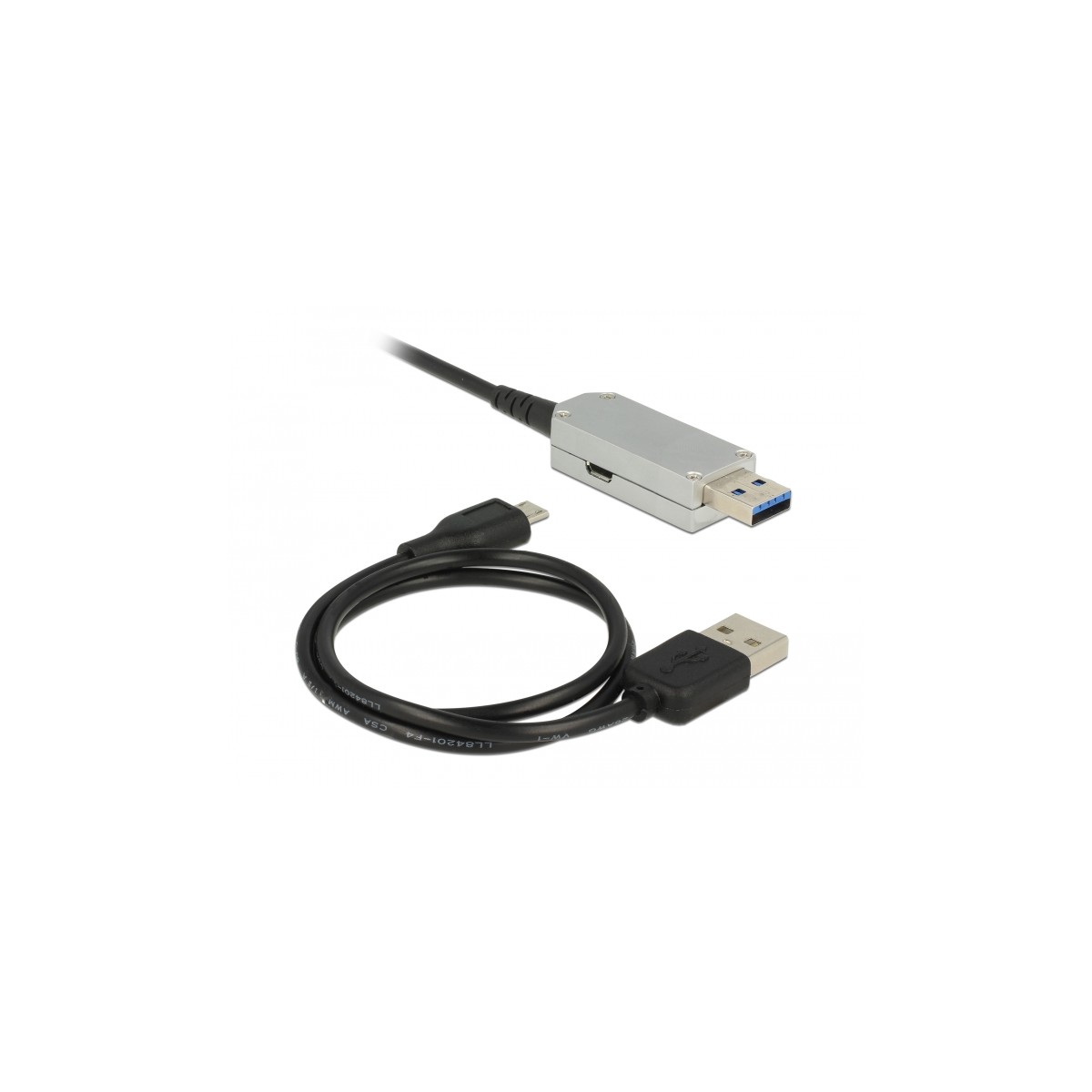 This USB cable by Delock is used to connect USB devices, such as a webcam or a printer, to a PC or a laptop. This active optical cable is particularly thin and can transmit signals with virtually no loss over longer distances. The integrated Micro USB connector and the included Micro USB cable can supply additional power.