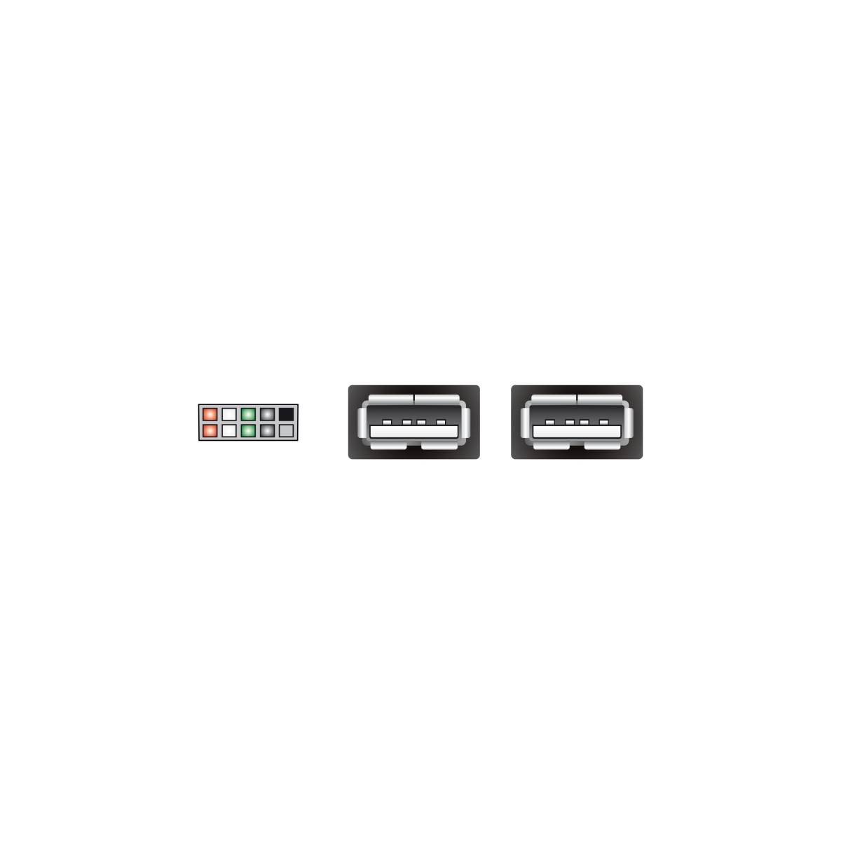 • Connector: 10 pin USB 2.0 pin header > 2 x USB 2.0 type A female