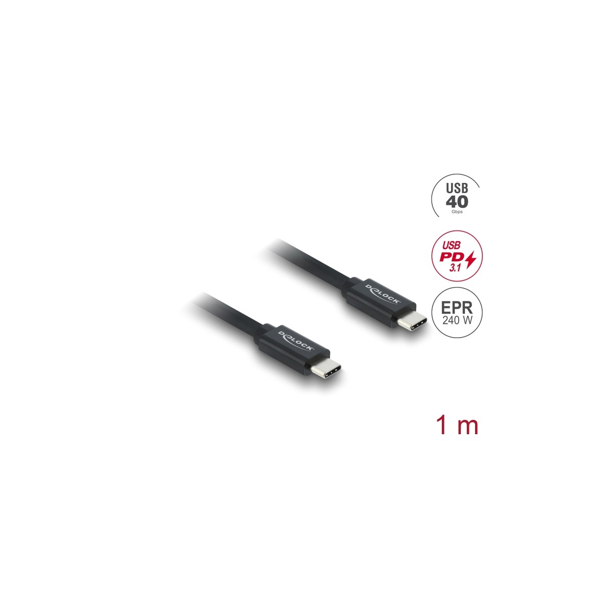 Delock Coaxial USB 40 Gbps cable USB PD 3.1 240 W 1 m
