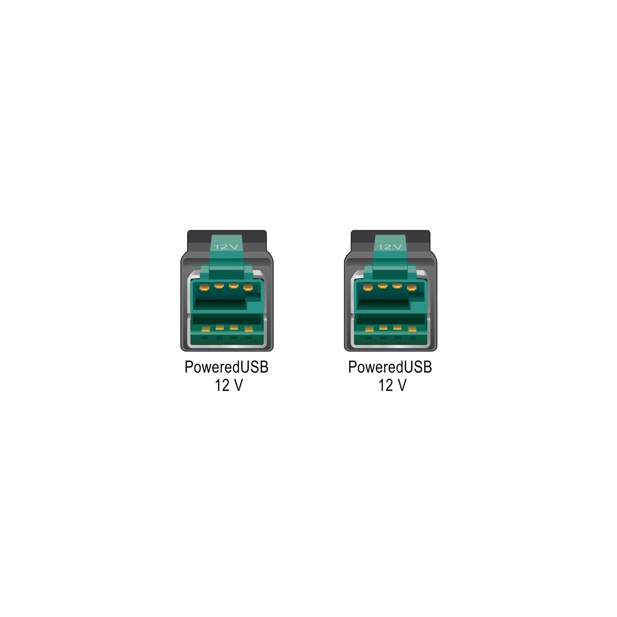 This PoweredUSB cable by Delock can be used to connect a device with PoweredUSB 12 V port to a PC or hub with PoweredUSB 12 V port. It is suitable for connecting various POS devices such as printers and terminals, e.g. by Epson, Honeywell or IBM. The cable is used both for data transmission and for power supply of the connected device.