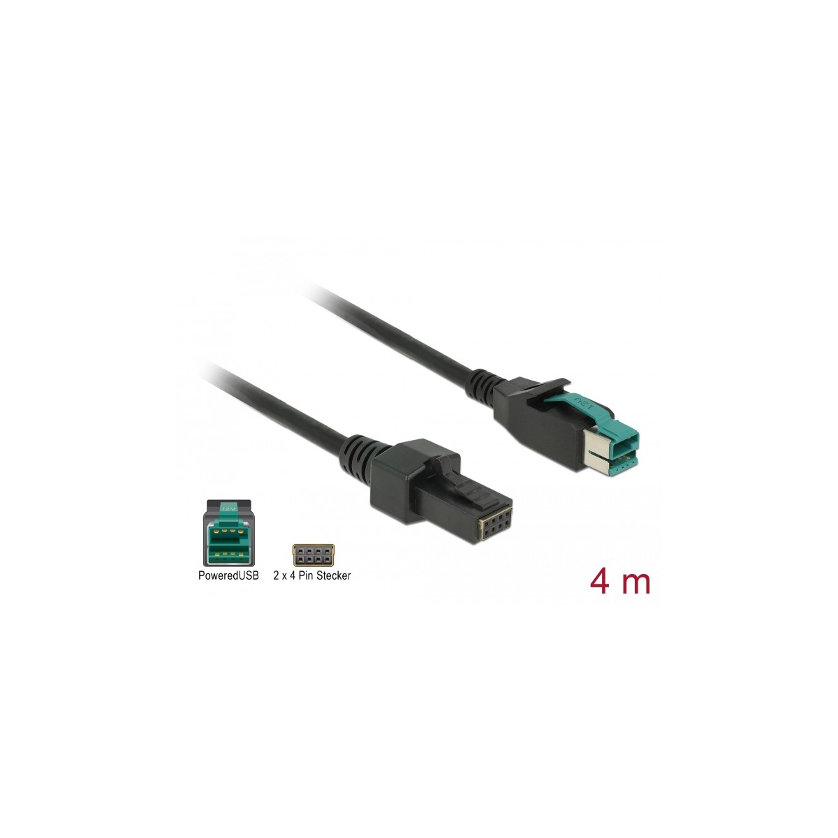 Delock PoweredUSB cable male 12 V 2 x 4 pin male 4 m for POS printers and terminals