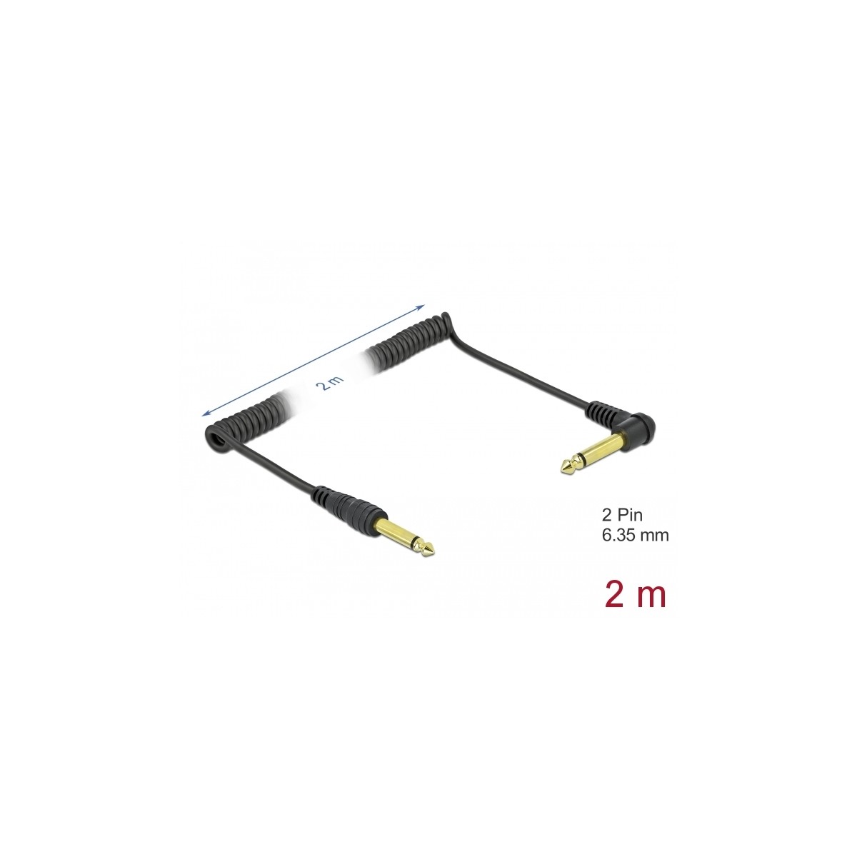Delock Coiled Cable 6.35 mm 2 pin Mono Jack male to Mono Jack male angled 2 m black