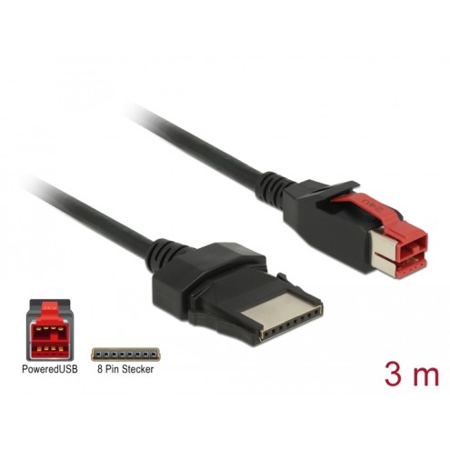 Delock PoweredUSB cable male 24 V 8 pin male 3 m for POS printers and terminals