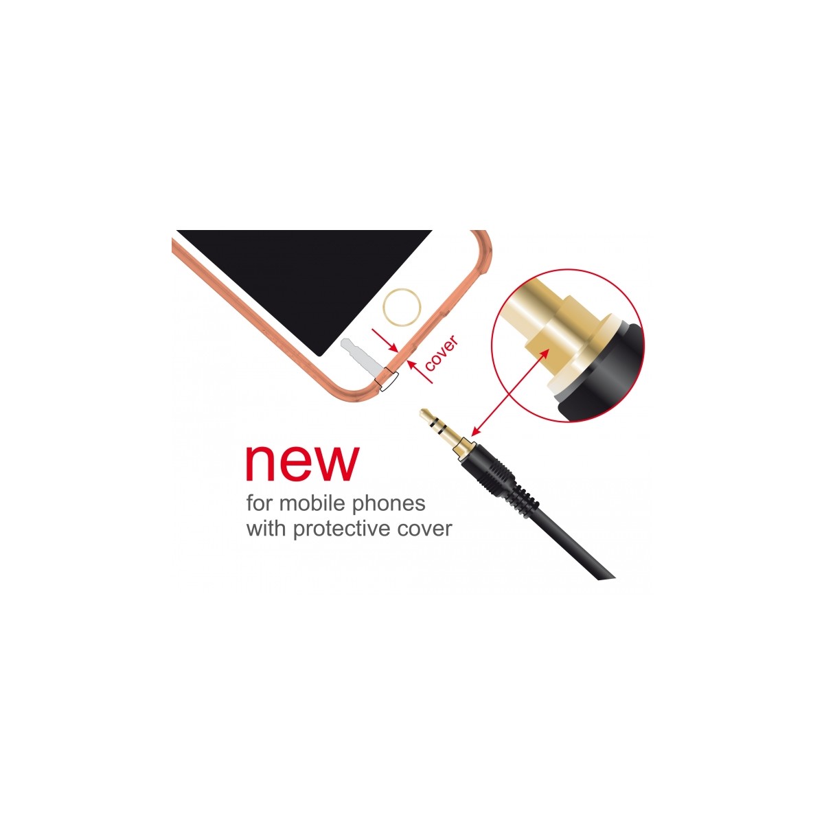 This stereo jack cable by Delock enables the extension of a 3.5 mm stereo jack connection. Thus it can be used e.g. for connection of a headset to a mobile device. Due to the additional gold ring at the end of the connector, this audio cable can easily be connected to devices, which are protected by a cover.