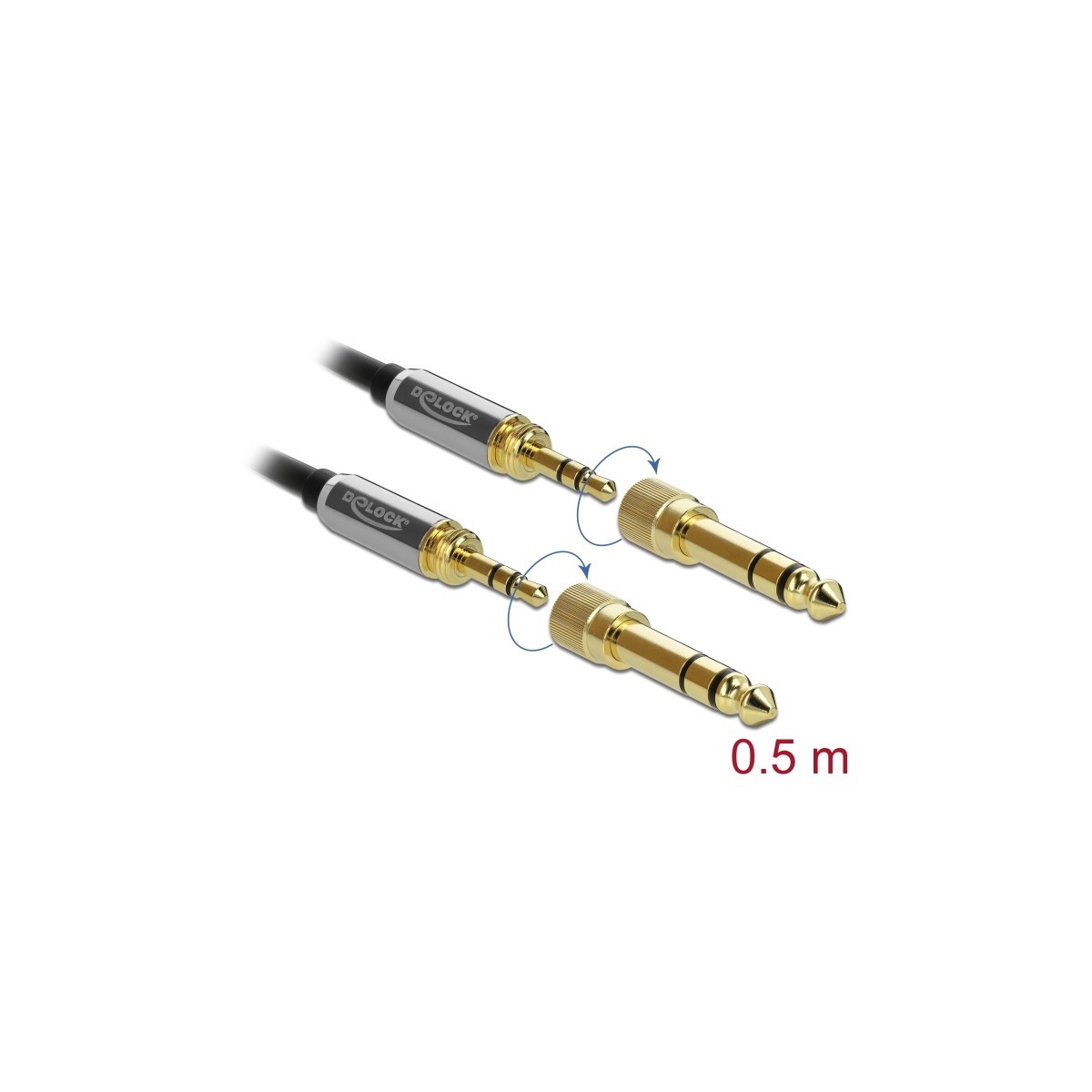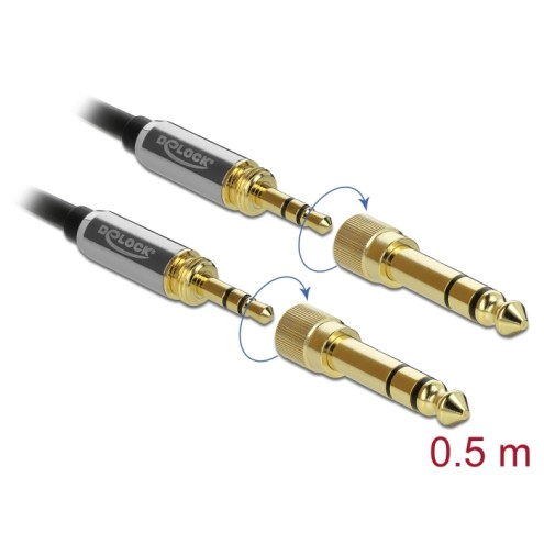 Delock Stereo Jack Cable 3.5 mm 3 pin male to male with screw adapter 0.5 m