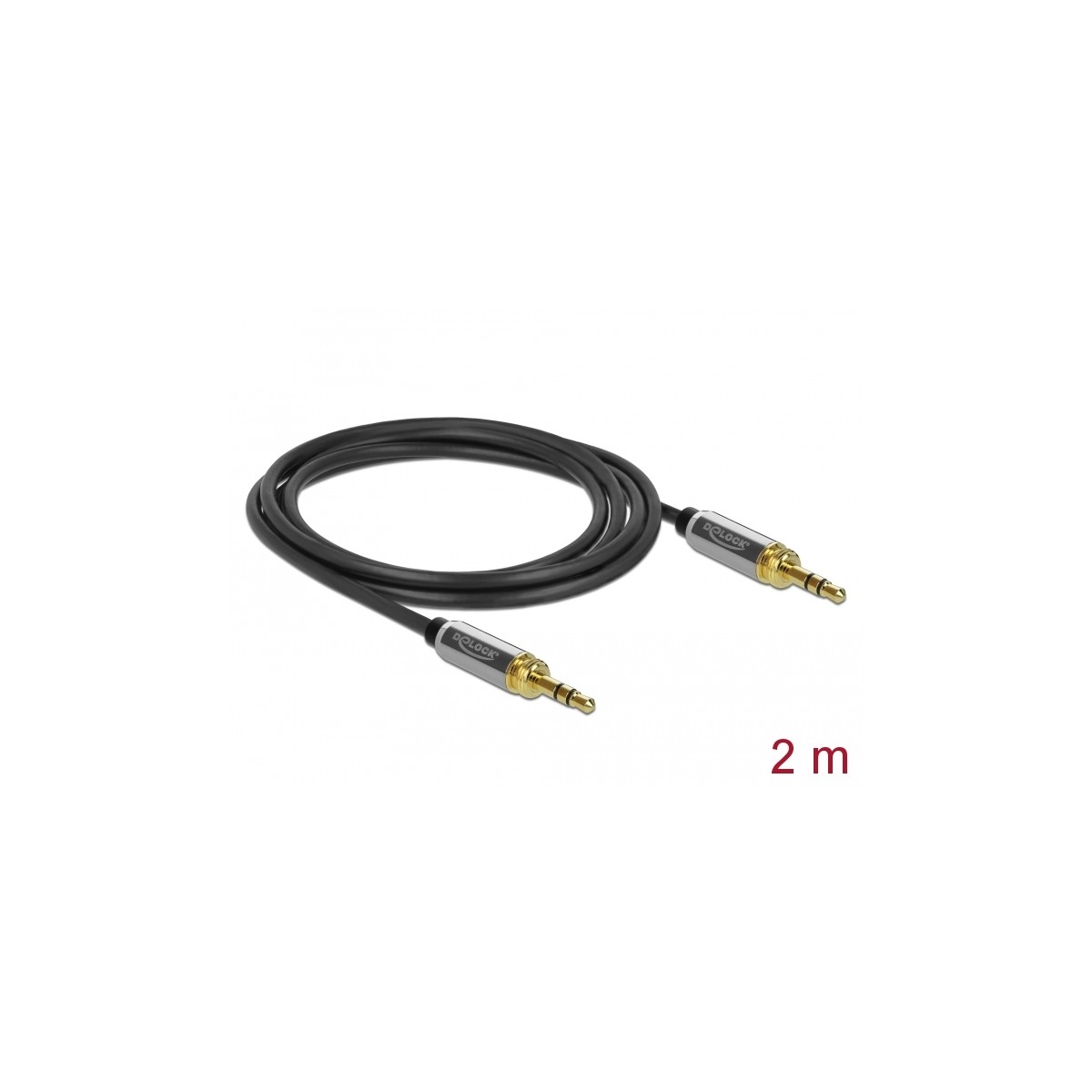 Delock Stereo Jack Cable 3.5 mm 3 pin male to male with screw adapter 2 m