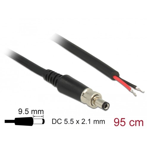 Delock Power cable DC 5.5 x 2.1 x 9.5 mm screwable to open wire ends 95 cm