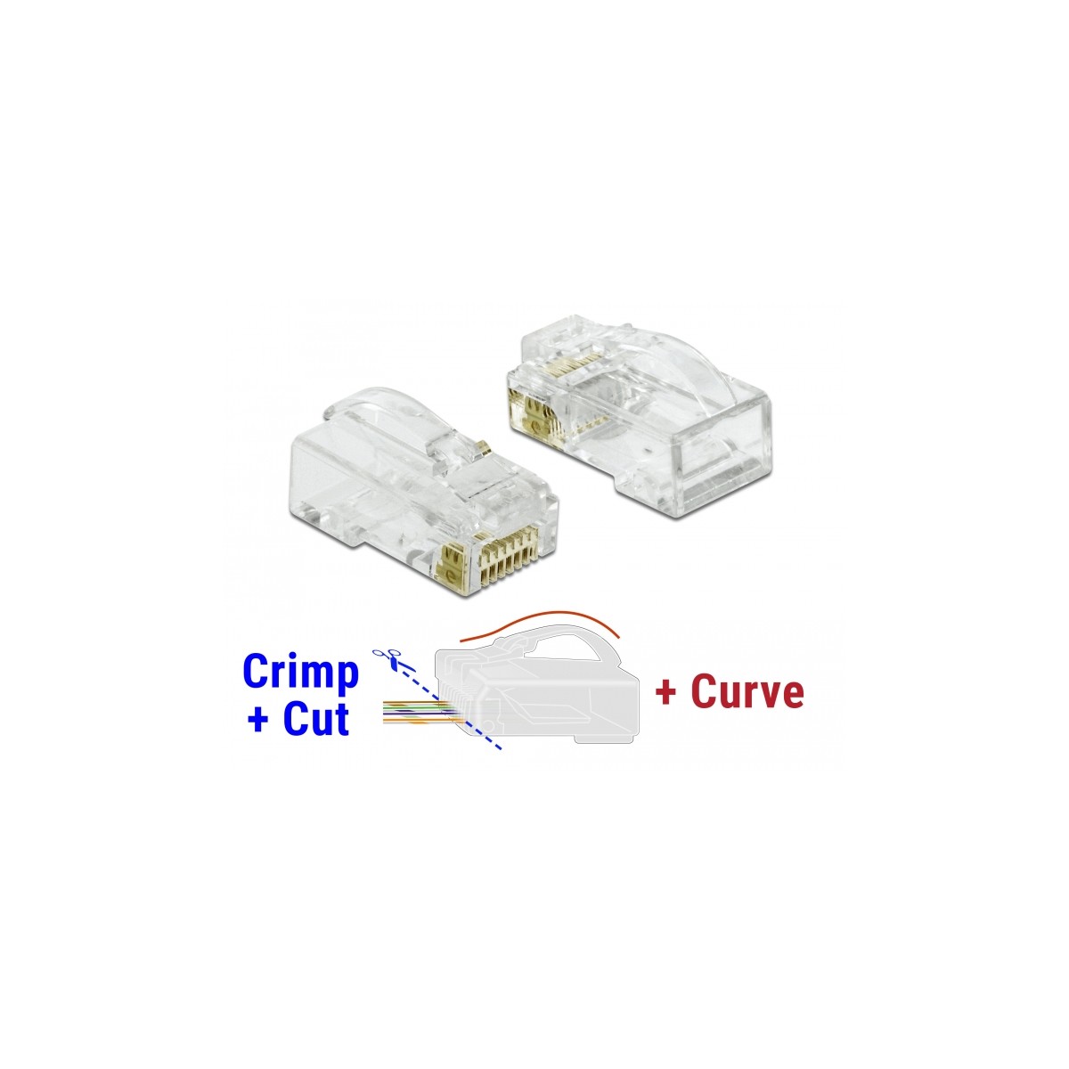 Delock RJ45 Crimp+Cut+Curve plug Cat.6 UTP 20 pieces