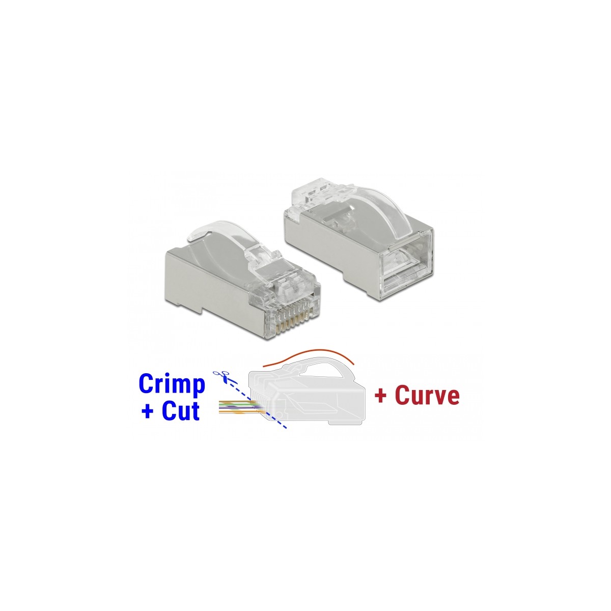 Delock RJ45 Crimp+Cut+Curve plug Cat.6 STP 20 pieces