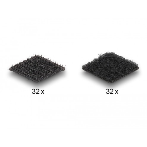 This set by Delock consists of 32 square self-adhesive hook-and-loop dots. The hook-and-loop dots are suitable for attaching light objects and can be used for various applications and craft projects.