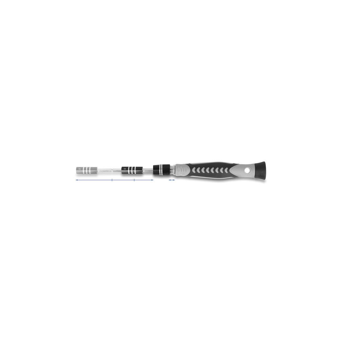This screwdriver set has some ingenious details. For example, the bit holder can be extended in three stages. Even screws that are difficult to access can thus be reached easily.