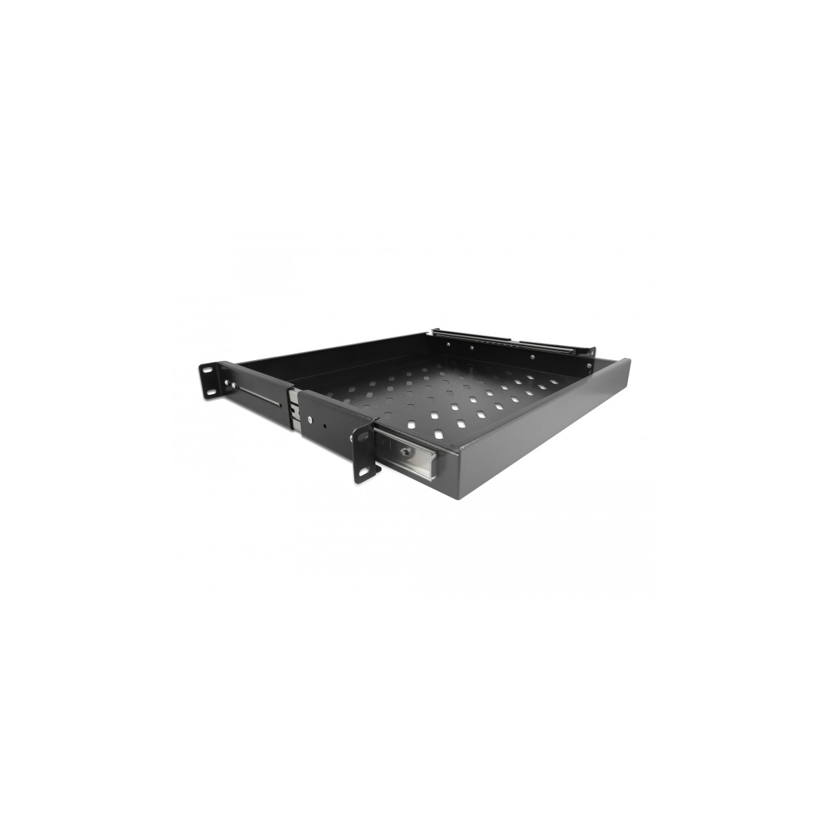This pull-out drawer by Delock can be mounted in a 19″ rack. The two ball-bearing slides on the sides ensure a minimal height and a smooth slide of the drawer.