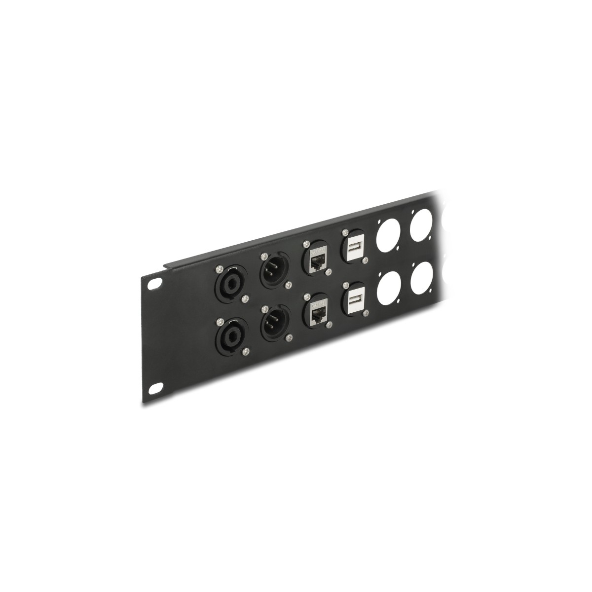 This patch panel by Delock can be mounted in a 19″ rack. With its standardized dimensions, it is suitable for easy mounting of 24 D-type modules.