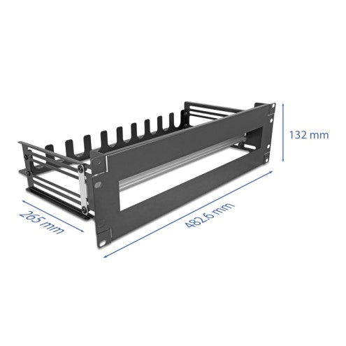 Delock 19″ Circuit-breaker with cover, cable strain relief and deepth-adjustable DIN rail 3U metal black