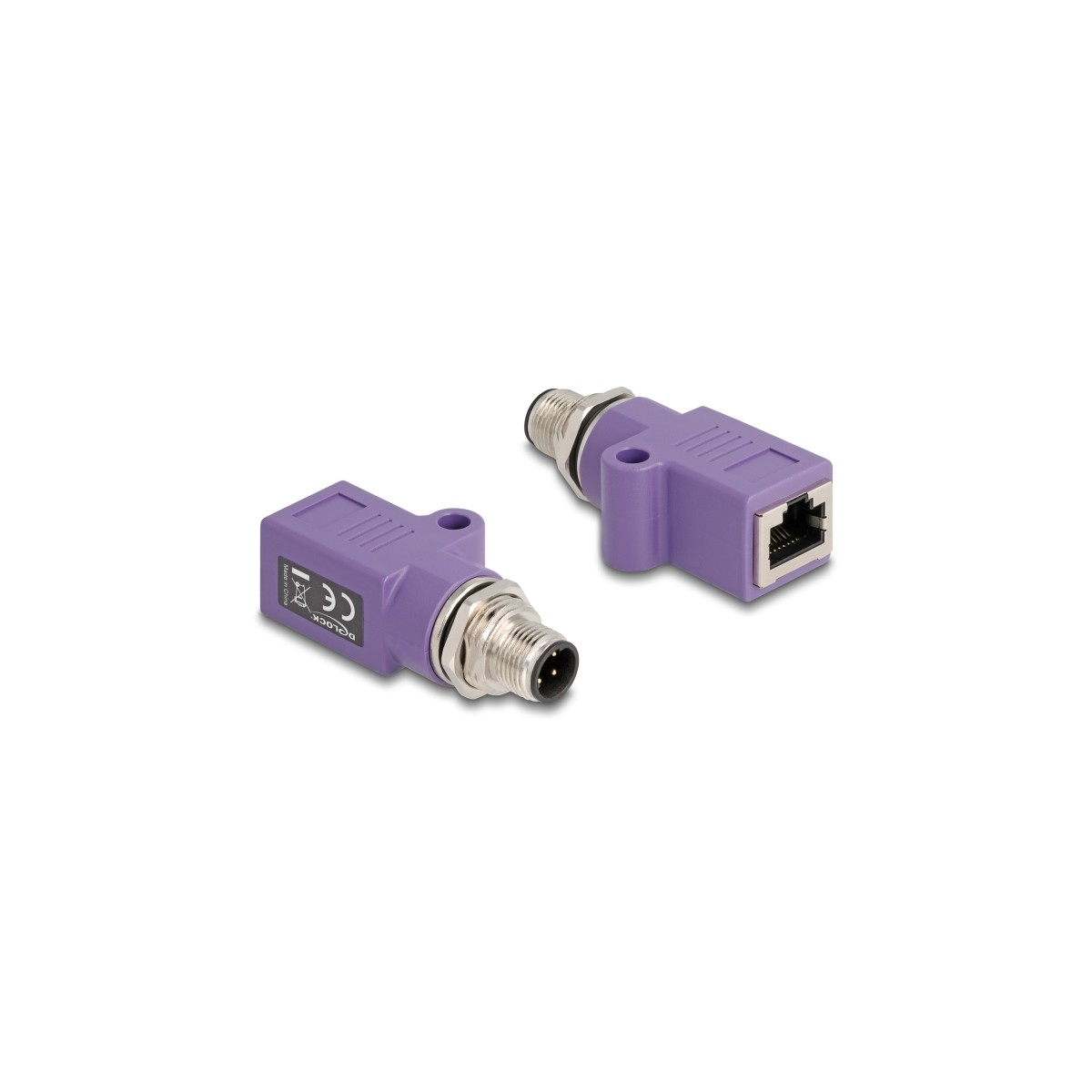 Delock M12 Adapter D-coded 4 pin male to RJ45 jack Cat.5e with mounting hole straight violet