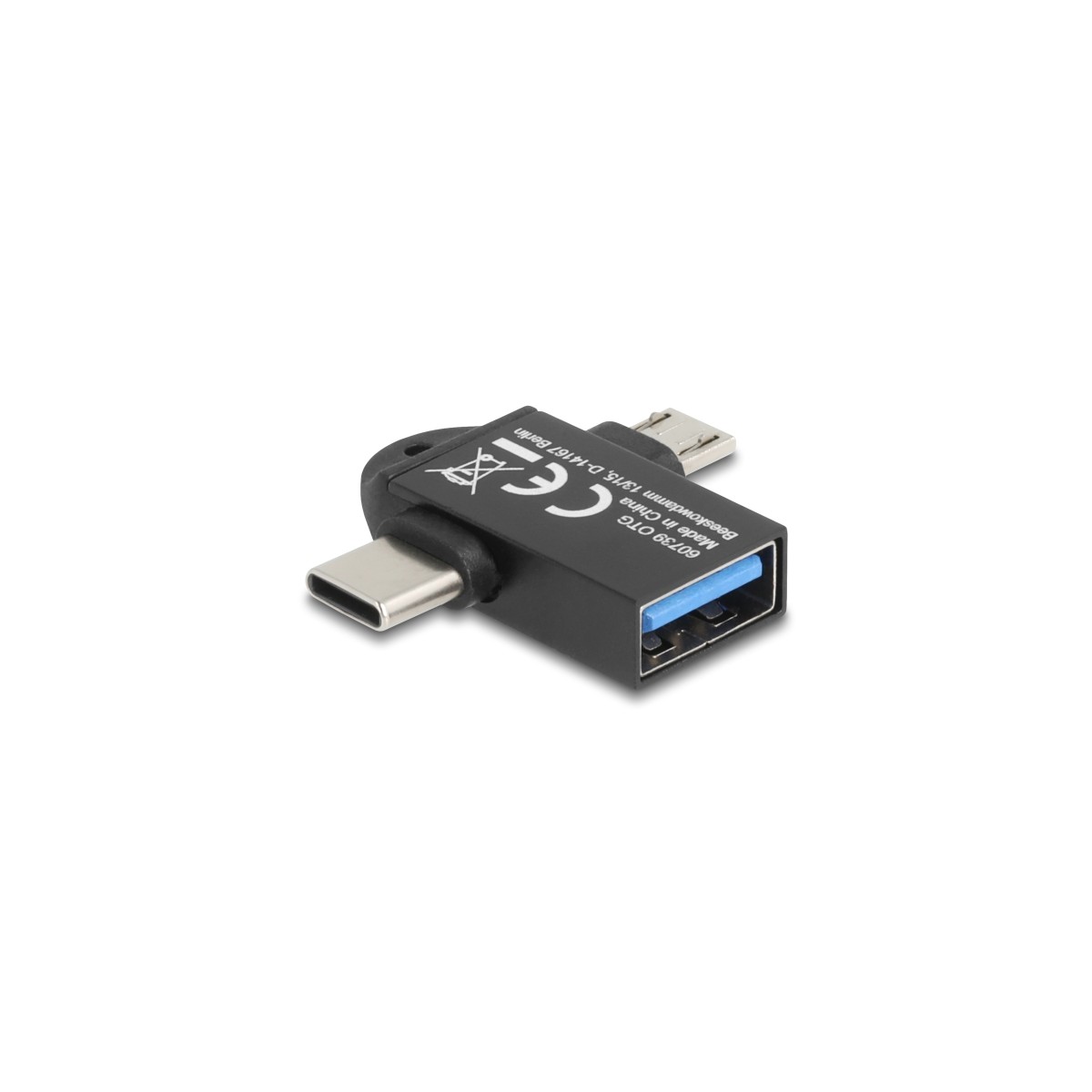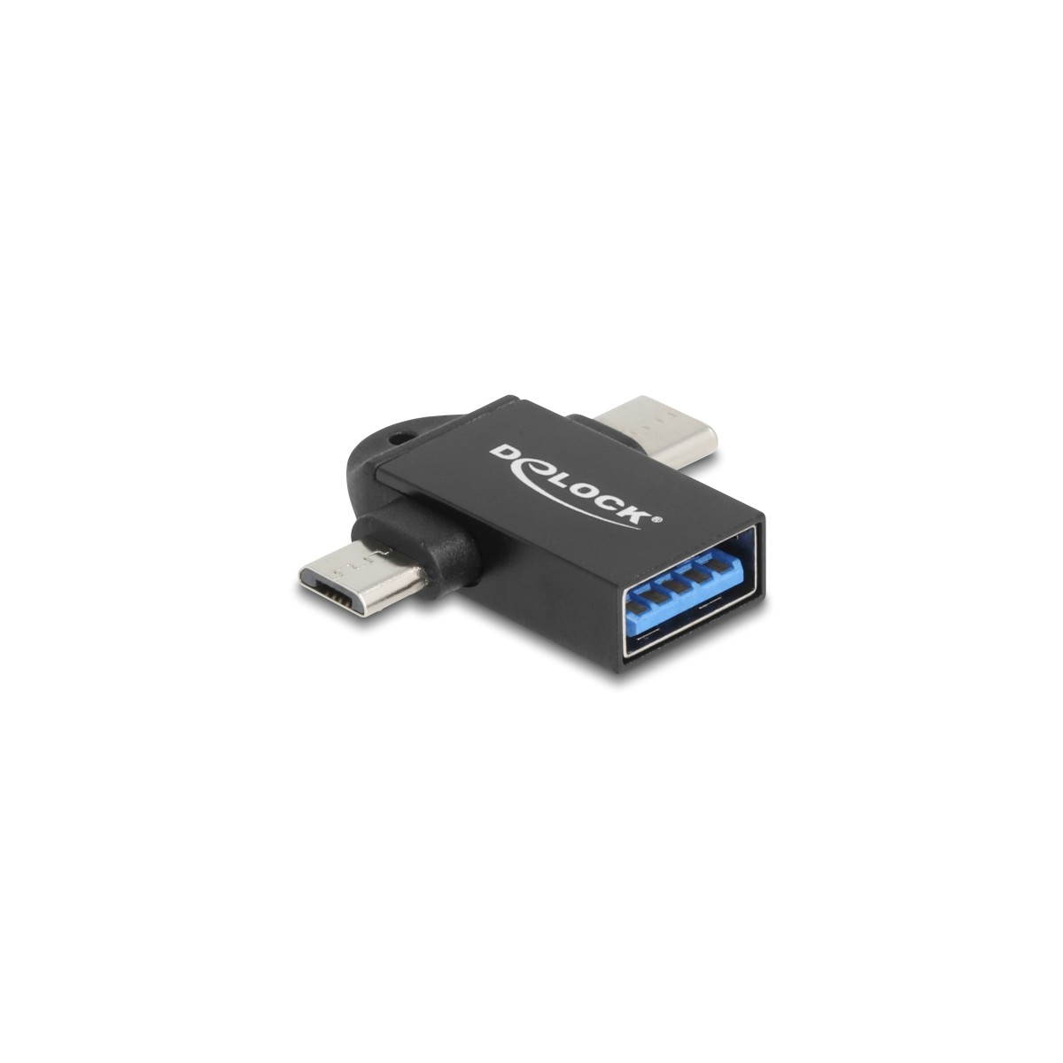 Delock Adapter USB 10 Gbps 2 in 1 USB-A female to USB Type-C™ male + USB Micro-B male OTG