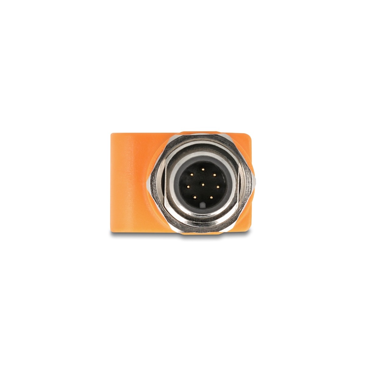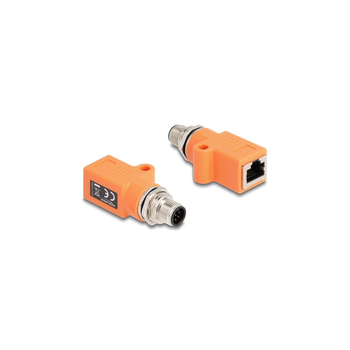 Delock M12 Adapter A-coded 8 pin male to RJ45 jack Cat.5e with mounting hole straight orange