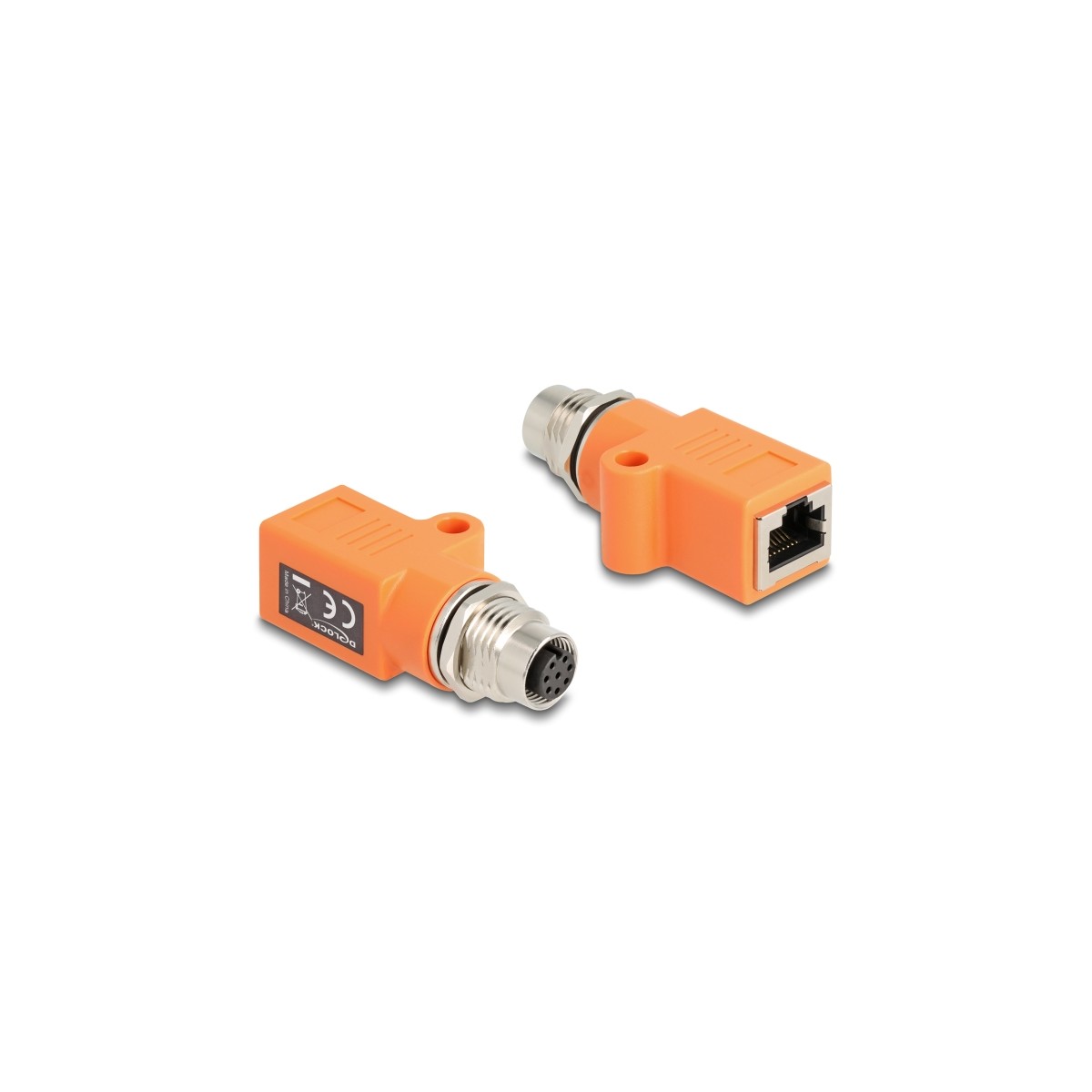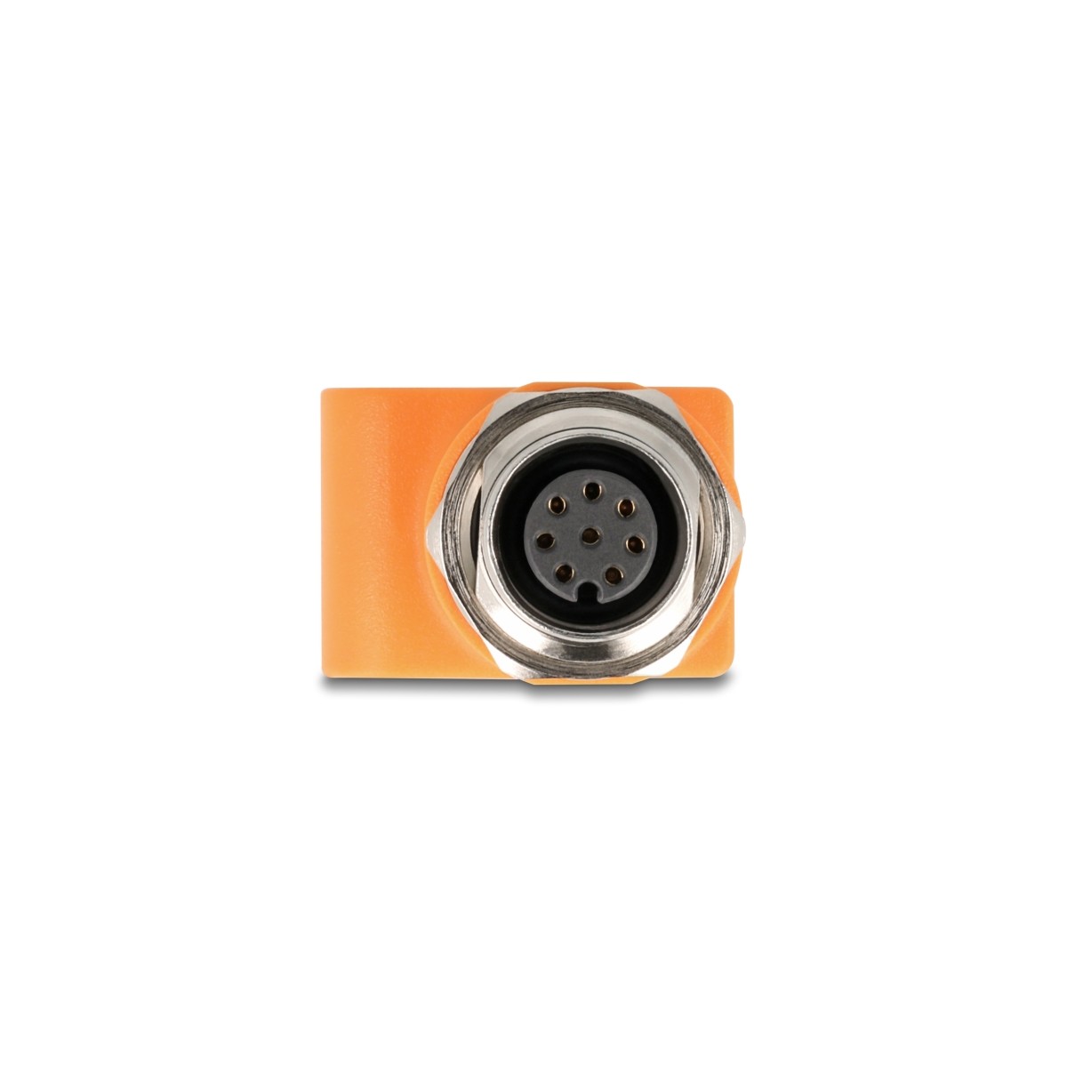 Delock M12 Adapter A-coded 8 pin female to RJ45 jack Cat.5e with mounting hole straight orange