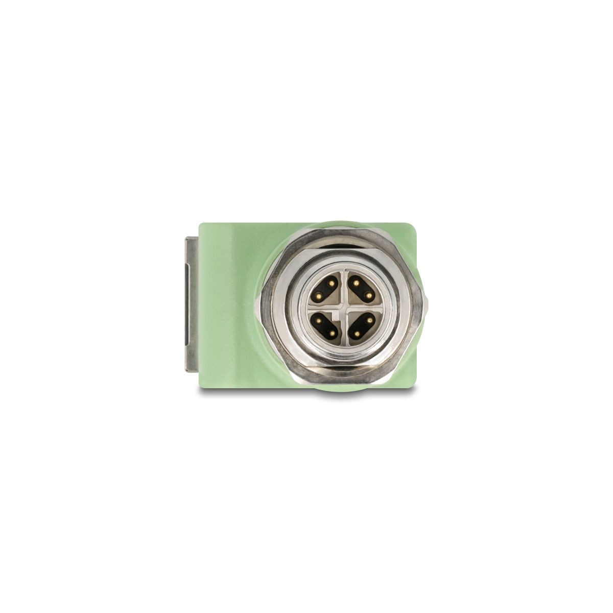Delock M12 Adapter X-coded 8 pin male to RJ45 jack Cat.5e with mounting hole 90° angled green