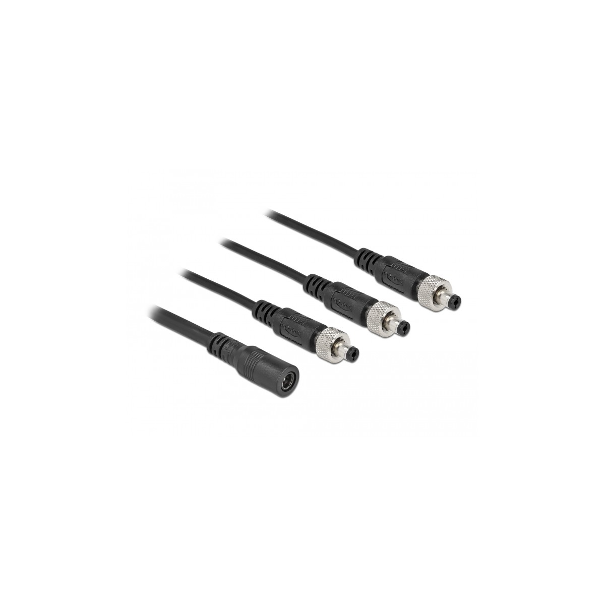 This splitter cable by Delock can be used for the connection of three devices which need low voltage e. g. cameras or LED-stripes to a power supply with DC connector. The screw type connector on the plugs supports a tight connection with the suitable DC jacks.