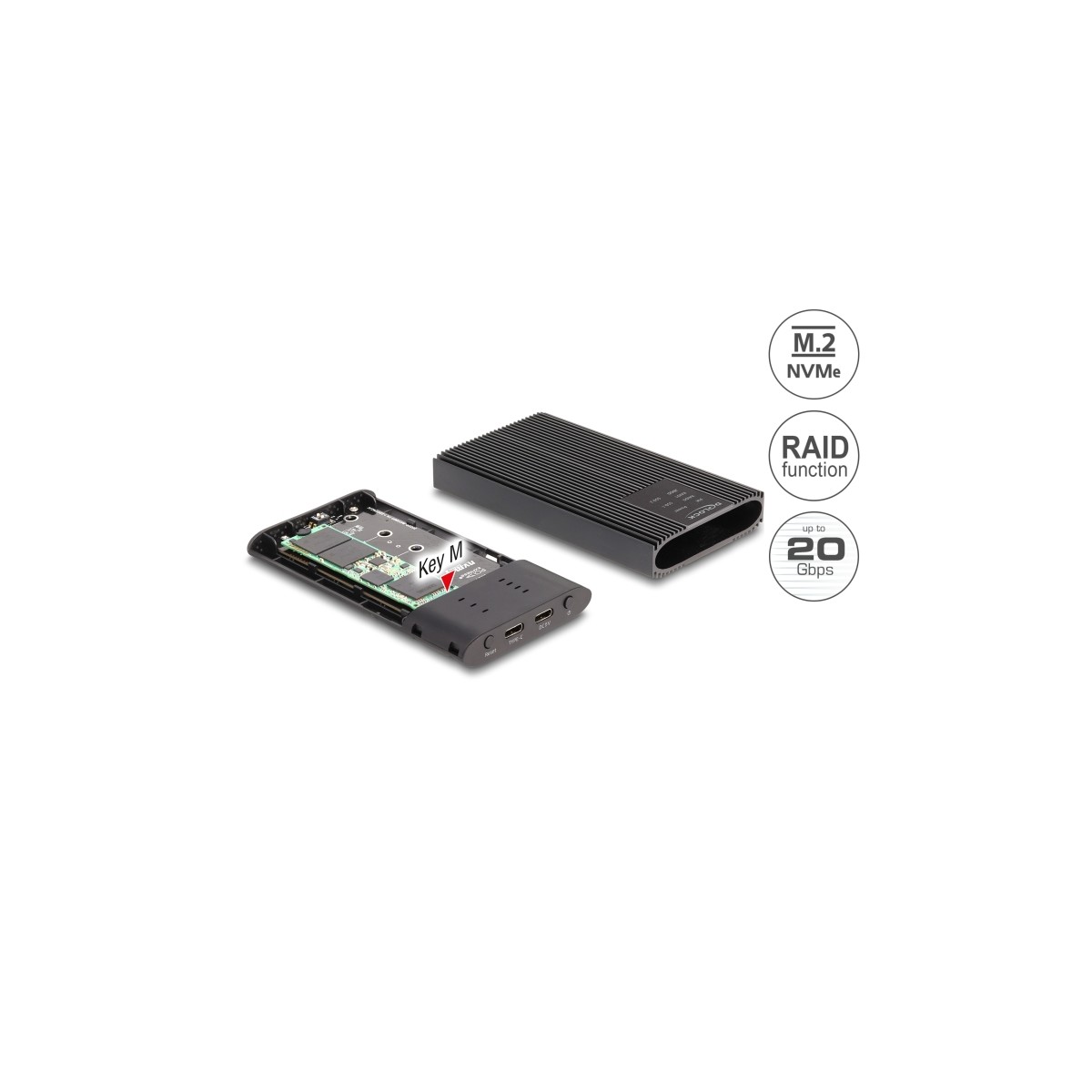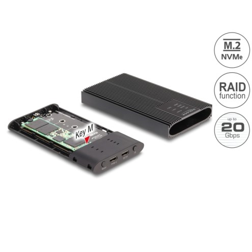Delock External Enclosure USB 20 Gbps for 2 x M.2 NVMe PCIe SSD with USB Type-C™ female and RAID - tool free
