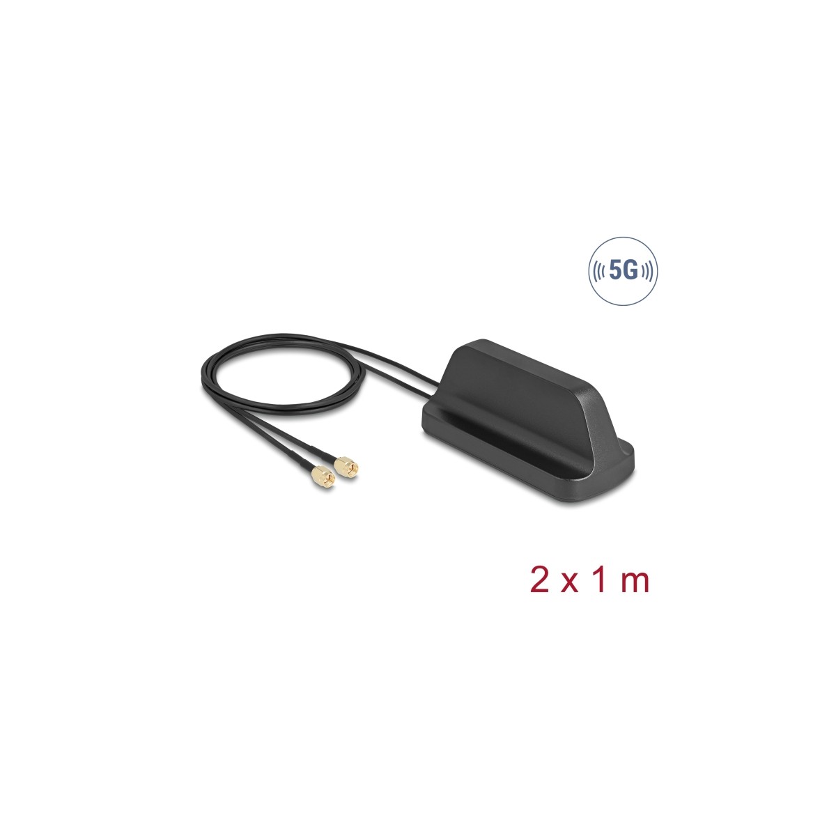 Delock 5G LTE GNSS WiFi 6 MIMO Antenna 2 x SMA plug 2.1 - 3.0 dBi omnidirectional with magnetic base and connection cable ULA100