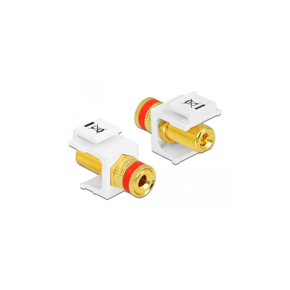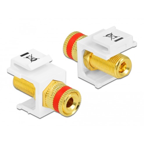 This module by Delock can be used to extend e. g. a speaker cable. With its standardised dimensions it can be used for easy snap-in mounting in e.g. a Keystone patchpanel, face plate or surface-mount box.