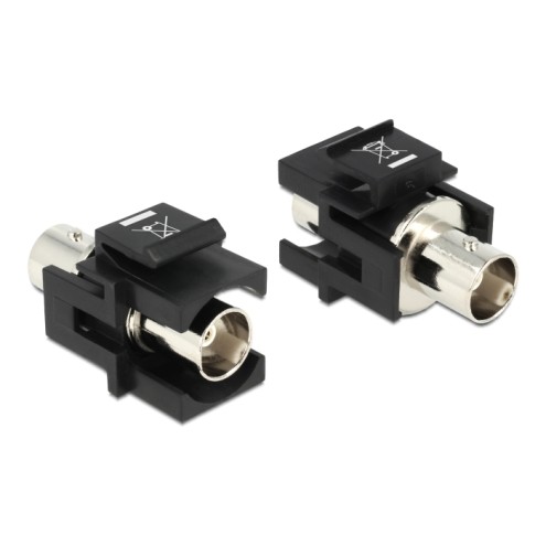 This module by Delock can be used to extend a BNC-connection. With its standardised dimensions it can be used for easy snap-in mounting in e. g. a Keystone patchpanel, face plate or surface-mount box.