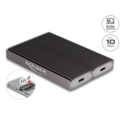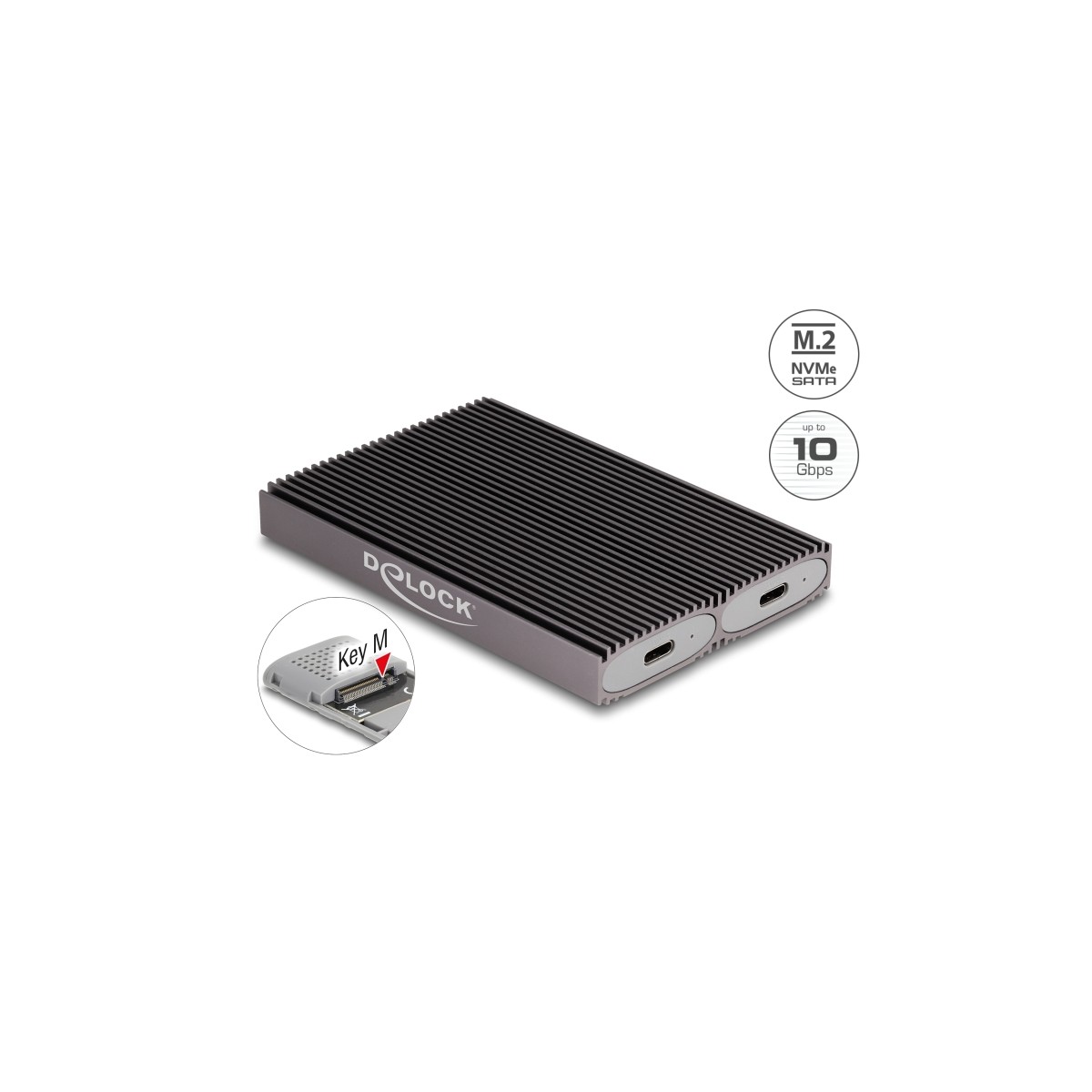 Delock External USB Type-C™ Dual Combo Enclosure for 2 x M.2 NVMe PCIe or SATA SSD - tool free
