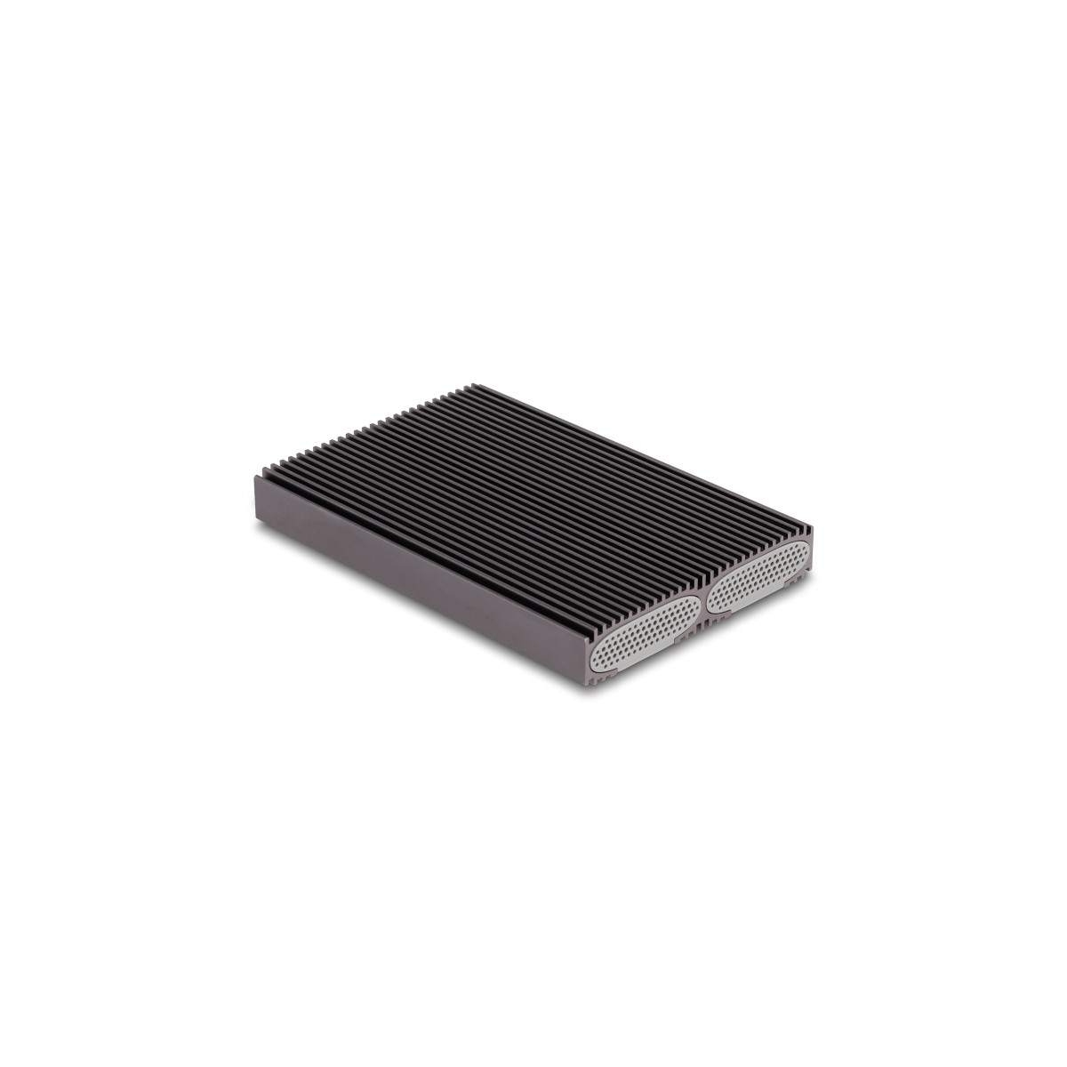 This enclosure by Delock enables the installation of two M.2 SSDs. Either M.2 PCIe NVMe SSDs or M.2 SATA SSDs in 2280, 2260, 2242 and 2230 format can be used and operated. The robust metal housing with cooling fins ensures an optimum temperature of the memory.