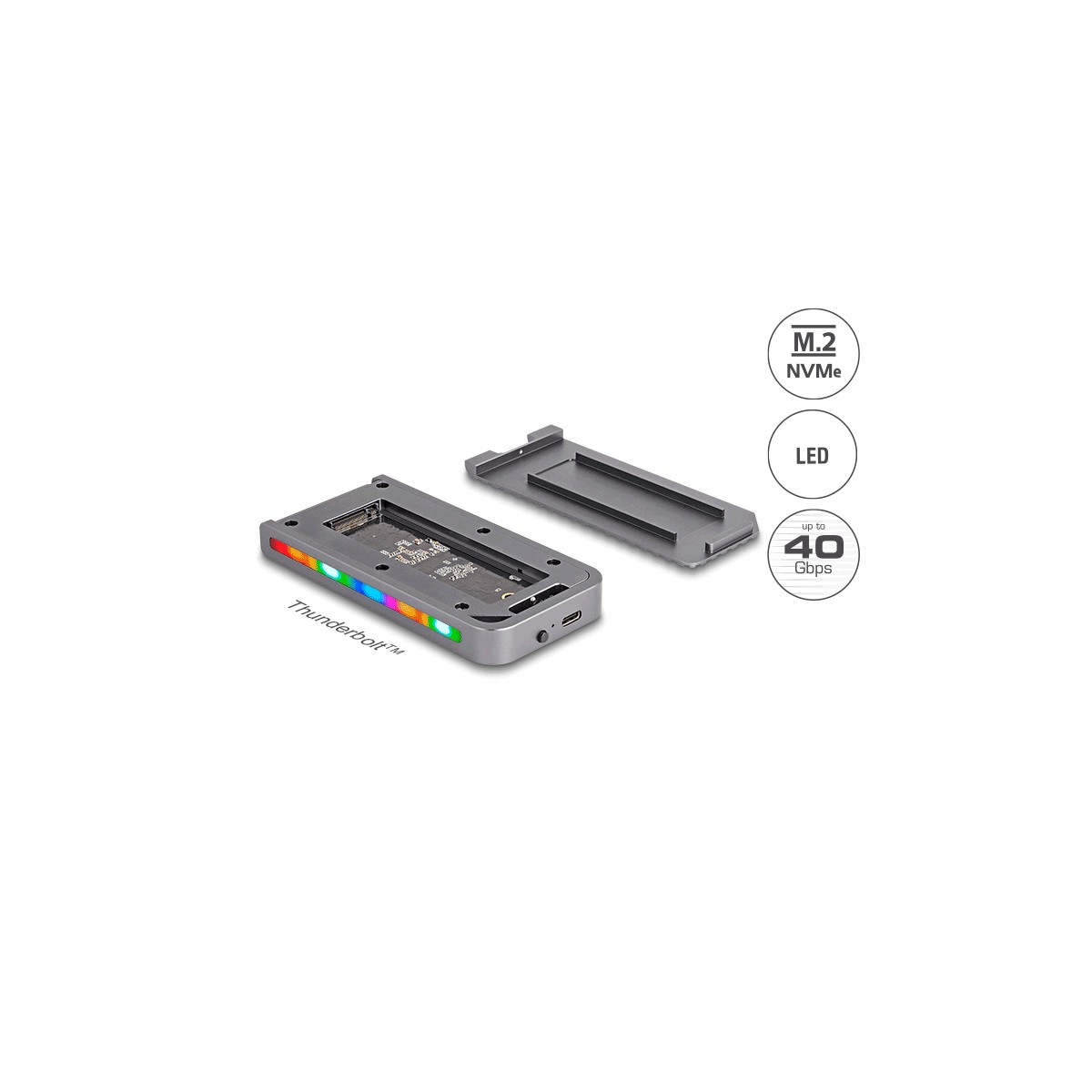Delock USB 40 Gbps Enclosure for 1 x M.2 NVMe SSD in Gaming Style with LED and Fan - tool free