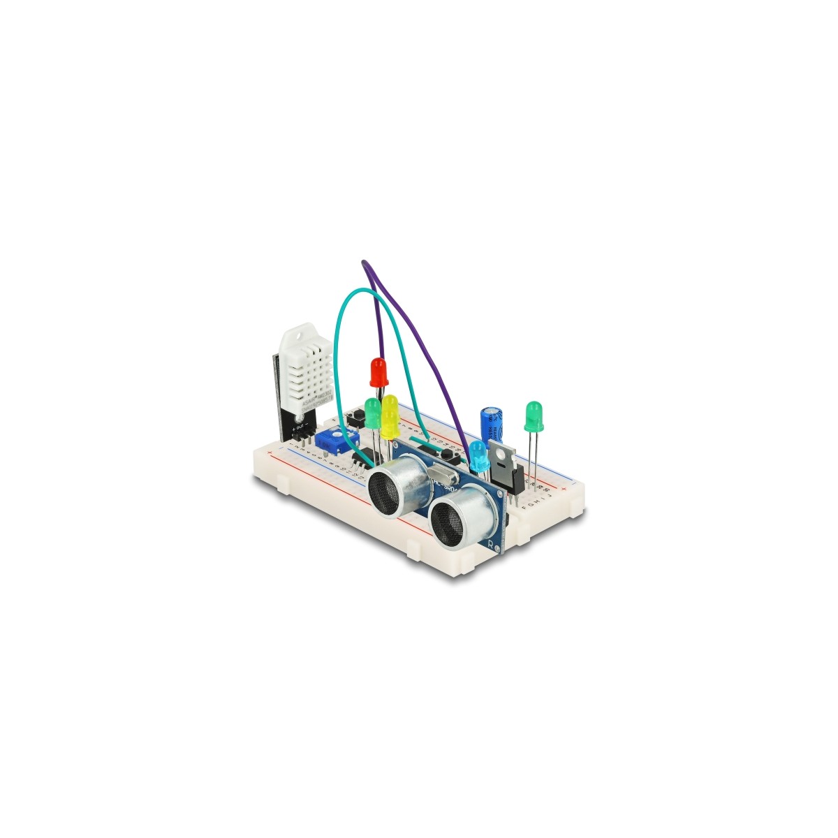 This experimental breadboard by Delock enables a fast solderless assembly of electronic circuits. The circuit can be changed by simply repositioning the components.