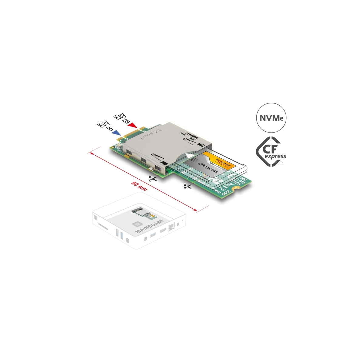 Delock Adapter M.2 Key B+M male to CFexpress Slot