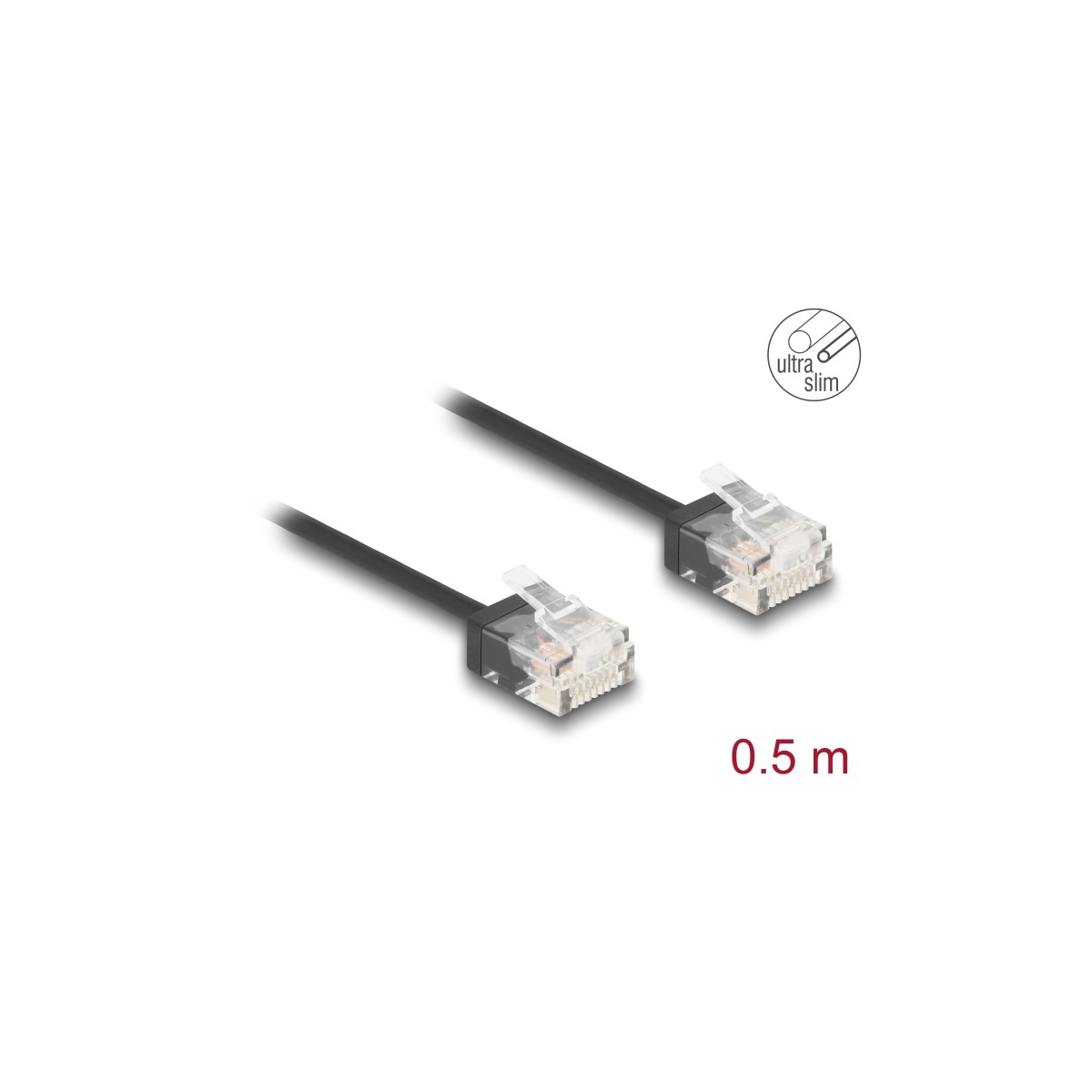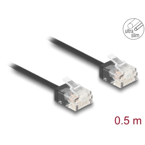 Delock RJ45 Network Cable Cat.6 UTP Ultra Slim 0.5 m black with short plugs