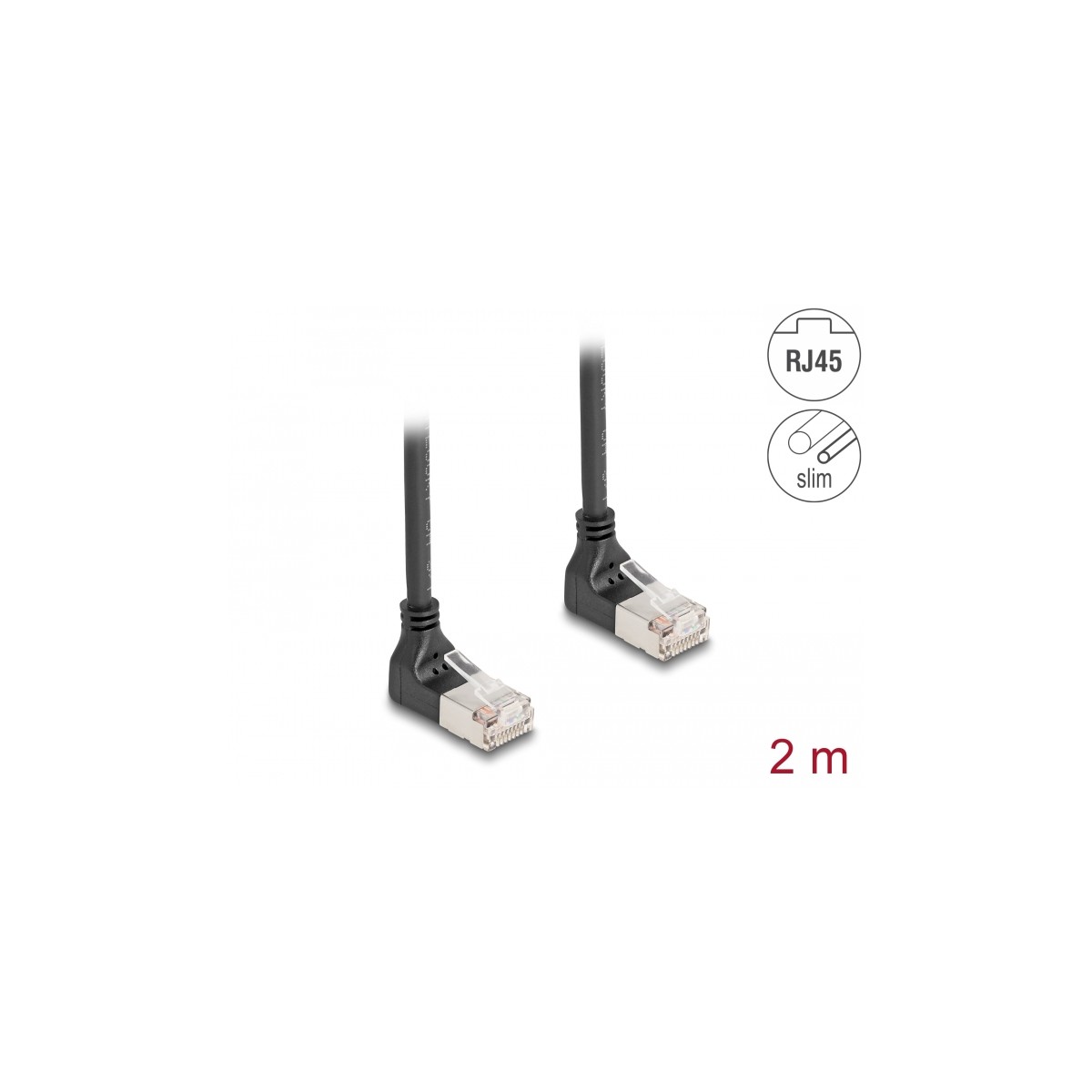 Delock RJ45 Network Cable Cat.6A S/FTP Slim 90° upwards / upwards angled 2 m black