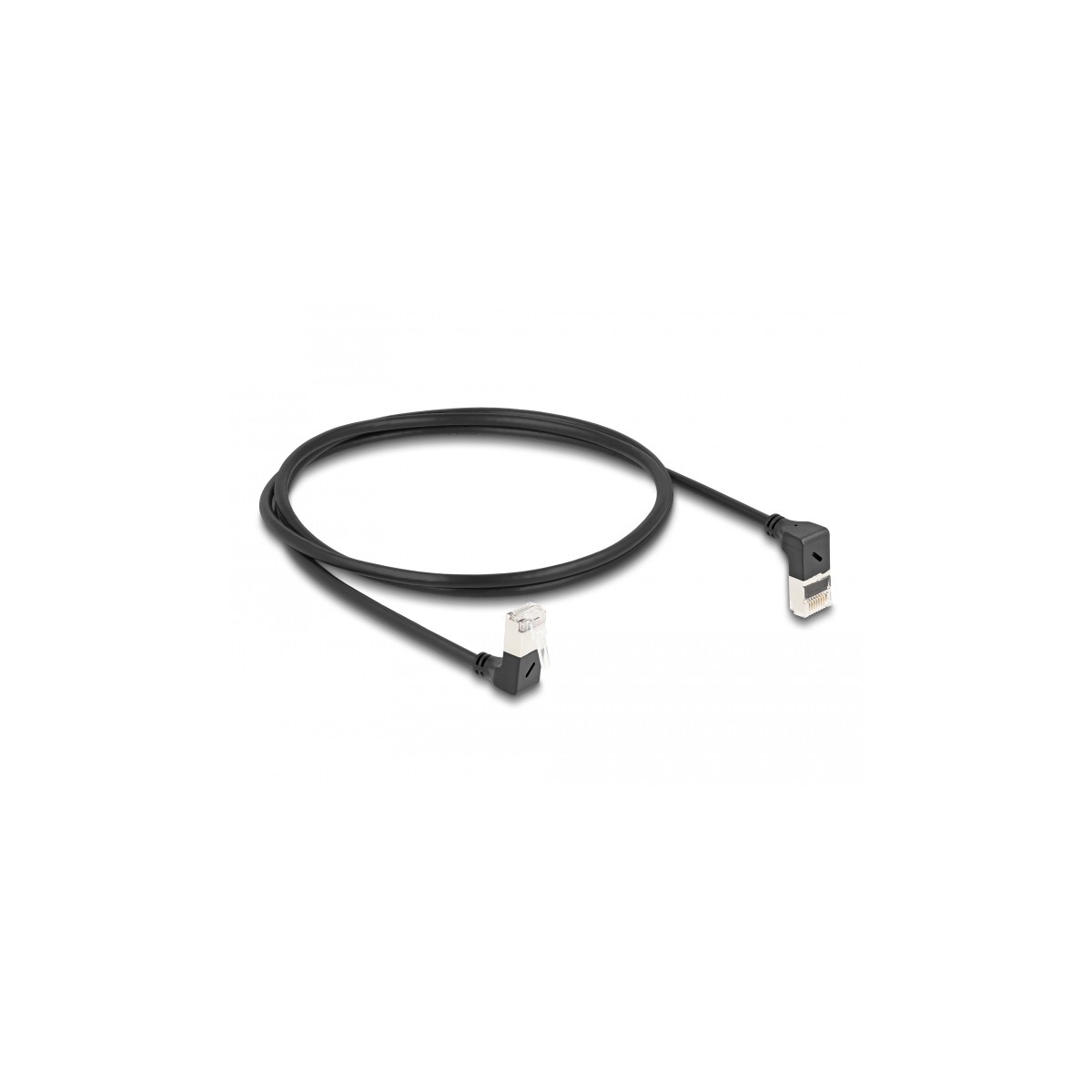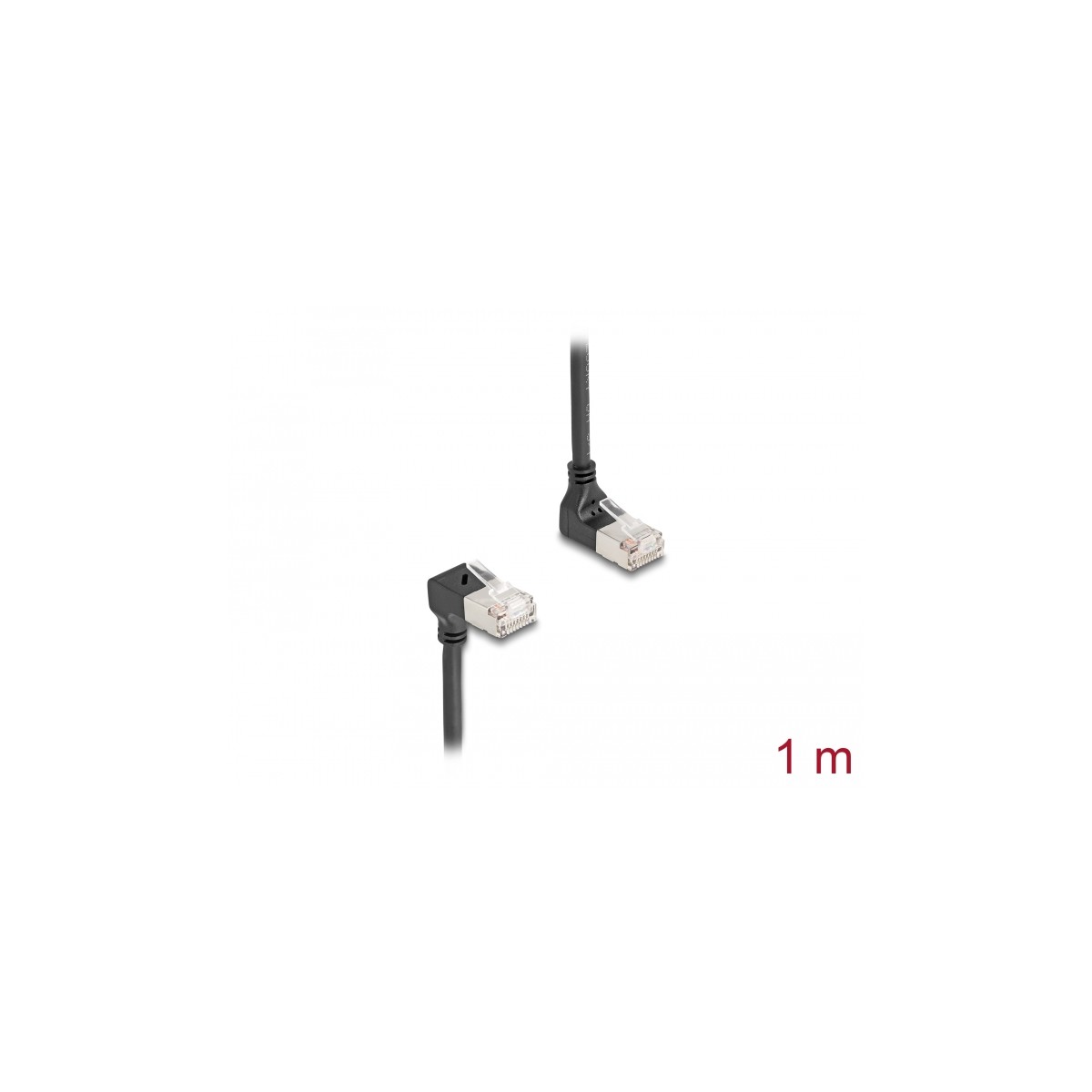 Delock RJ45 Network Cable Cat.6A S/FTP Slim 90° upwards / downwards angled 1 m black