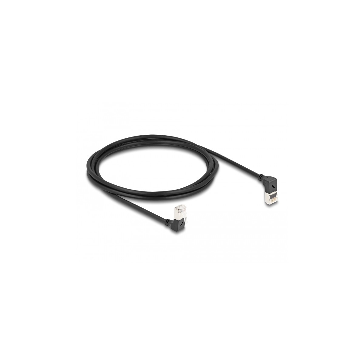 Delock RJ45 Network Cable Cat.6A S/FTP Slim 90° upwards / downwards angled 2 m black