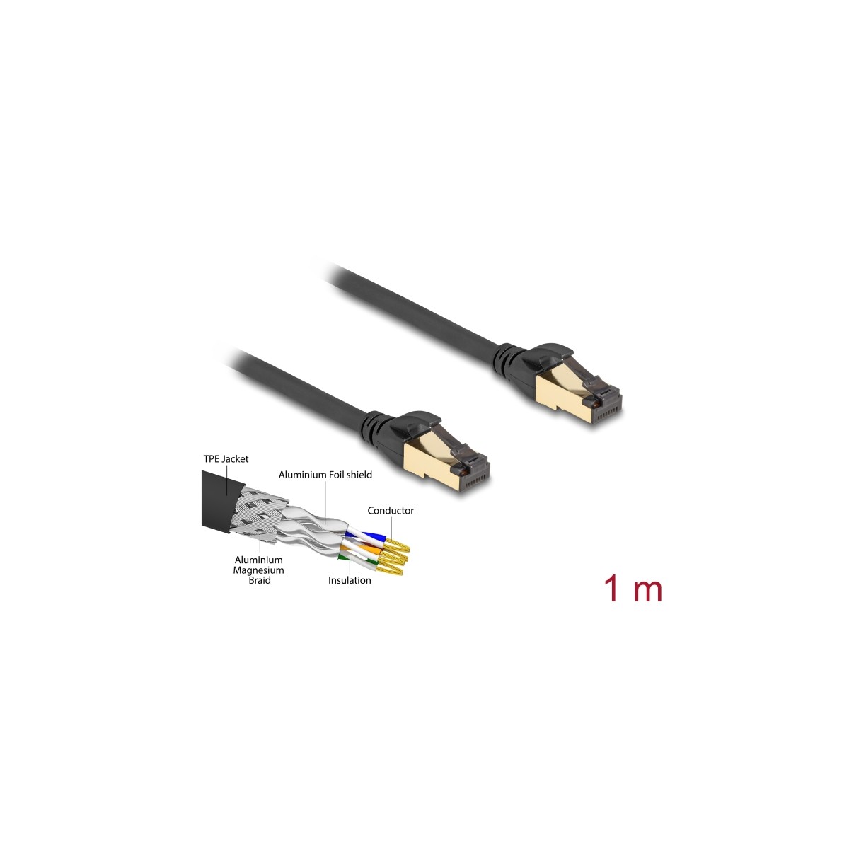 Delock RJ45 Network Cable Cat.6A male to male S/FTP black 1 m with Cat.7 raw cable suitable for industrial and outdoor use