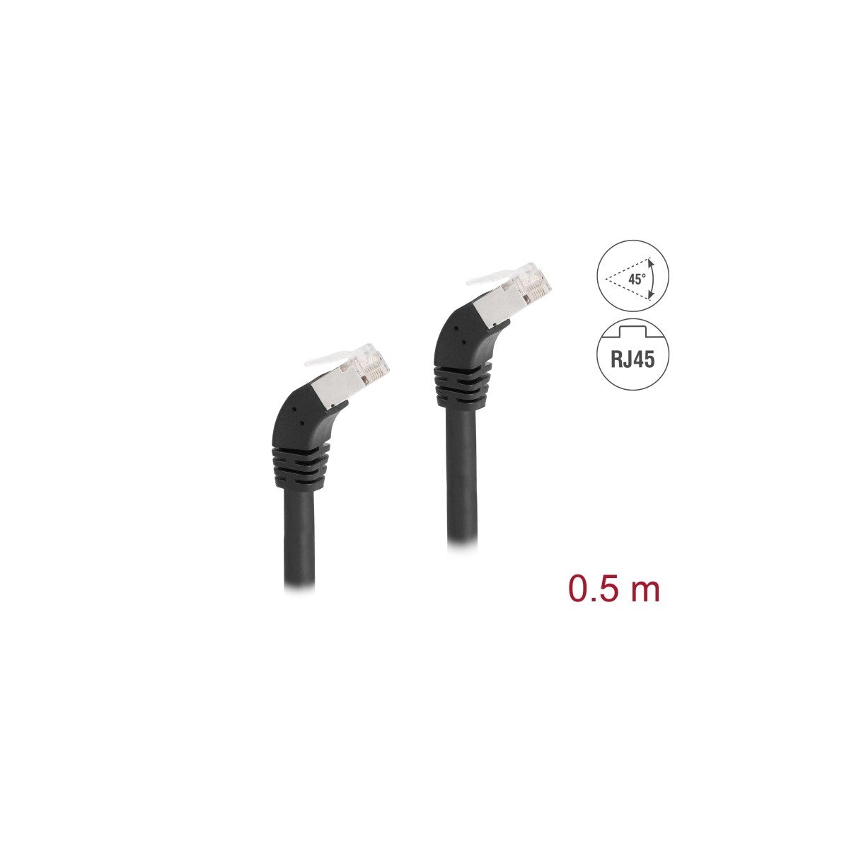 Delock RJ45 Network Cable Cat.6A S/FTP 45° downwards angled 0.5 m black