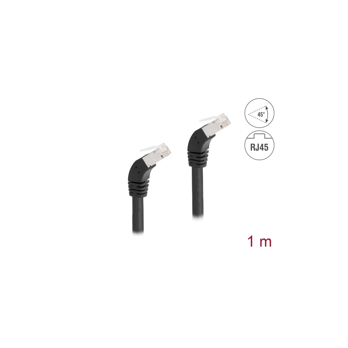 Delock RJ45 Network Cable Cat.6A S/FTP 45° downwards angled 1 m black