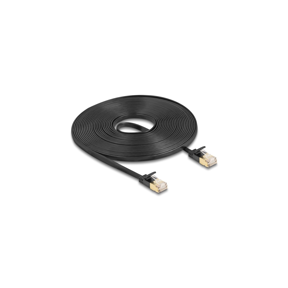 Delock RJ45 Network Cable Cat.6A plug to plug with robust latch and Cat.7 raw flat cable U/FTP 7.5 m black