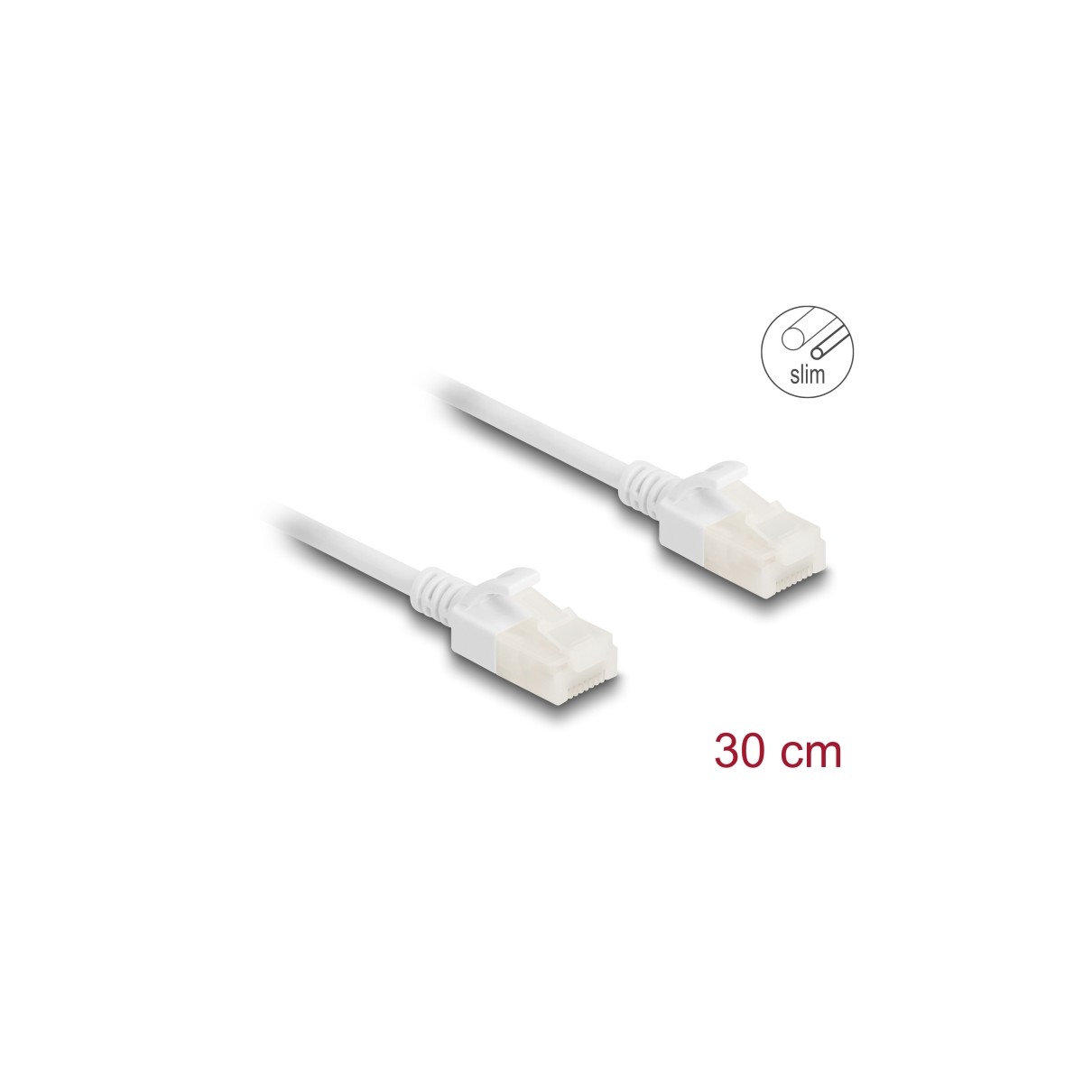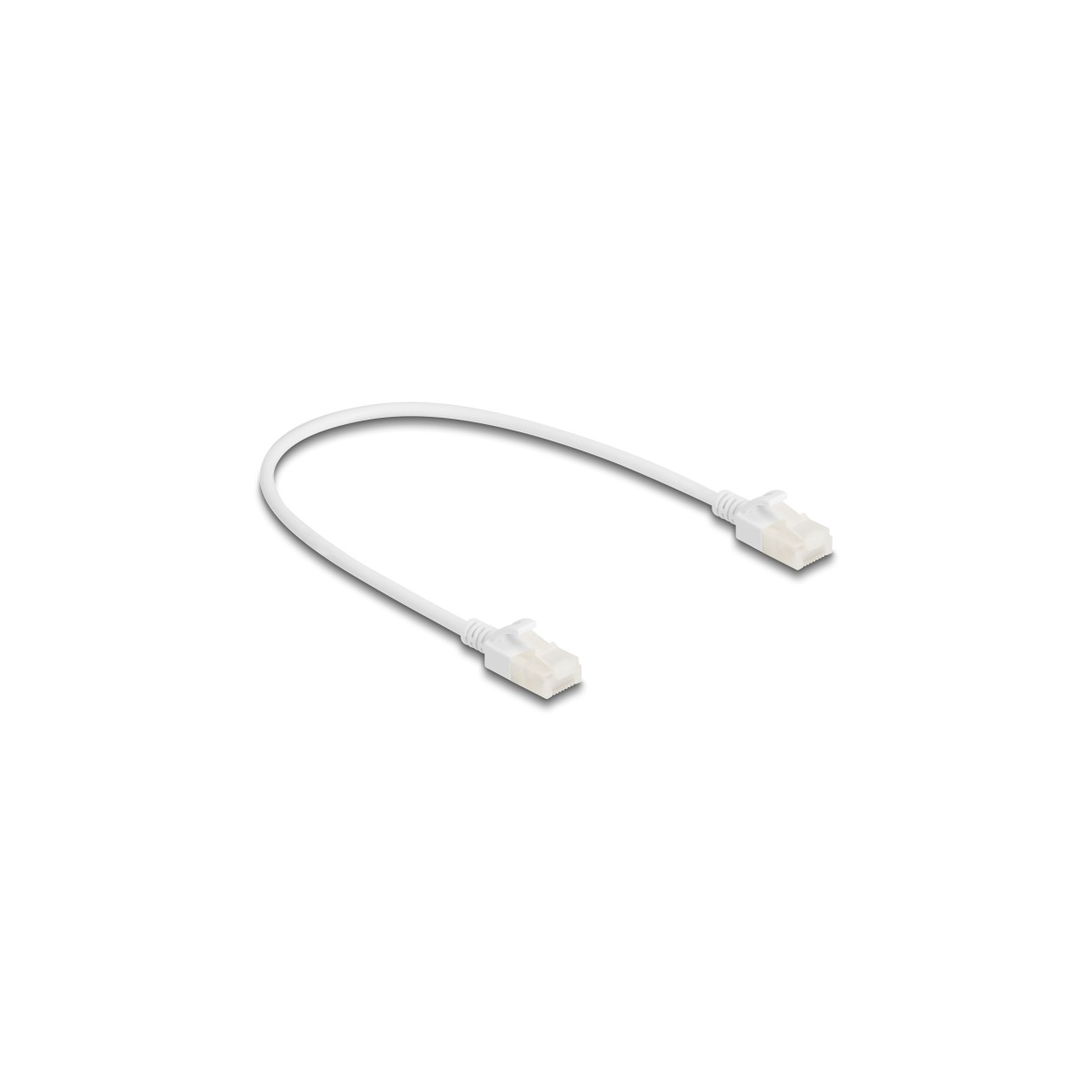 Delock RJ45 Network Cable Cat.6A plug to plug with robust latch for industrial use U/UTP Slim 0.3 m white